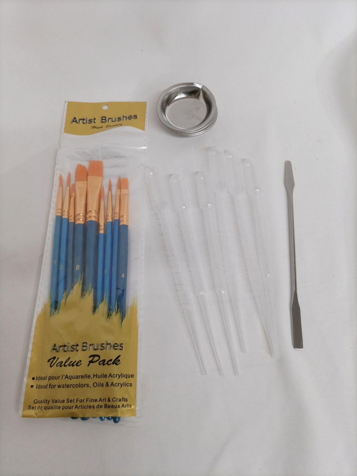 【商品説明】 ・画像1枚目が実際の内容全てです。 ※こちらは10本セットの商品ですが、9本しかありません。 ・セット内容:絵筆9本、スポイド6本、絵具皿5枚。 ・柔らかくて丈夫でお手入れしやすいPBT毛は、頻繁に使用しても持ちこたえ、洗浄後に毛が抜け落ちにくいです。 ・アクリル、水彩、エナメル、油、セルビニール、ガッシュなど、ほぼすべての種類の塗料に対応。