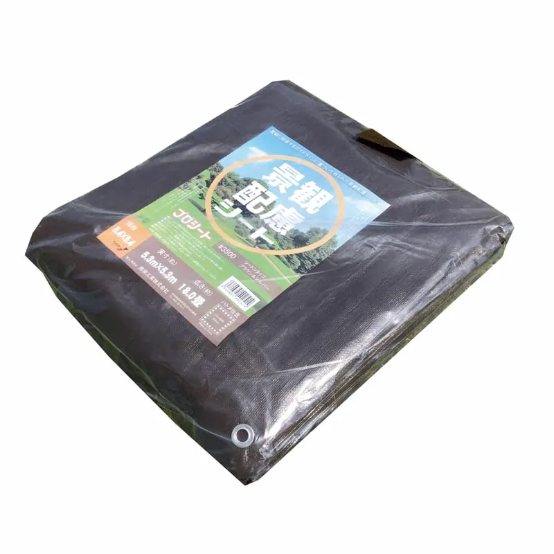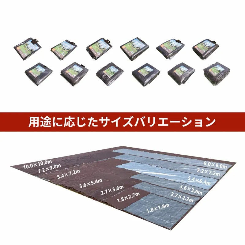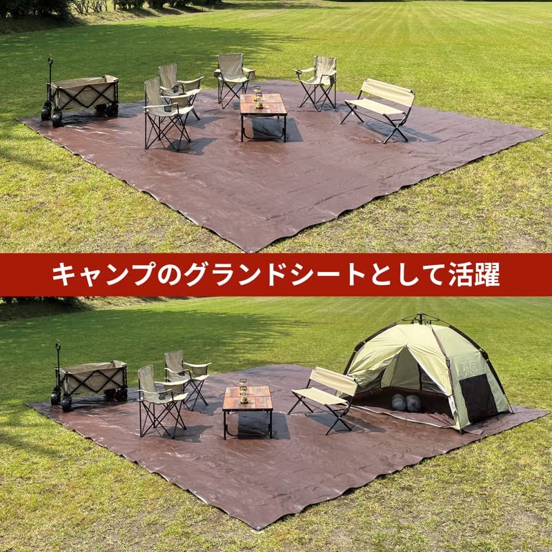 従来のブルーシートでは景観に影響する理由で、ガイドラインに基づいて製作したのがこのプロシートになります。表面はブラウン、裏面はシルバーのツートンタイプになっており、景観に影響が出ず、イベント時の写真や映像に活躍いたします。ポリエチレンクロス生地にUV剤加工を施しており、紫外線劣化を抑制します。日除けや風除けに使用しても、裏面がシルバーの為、内側が暗くなりにくくなっております。