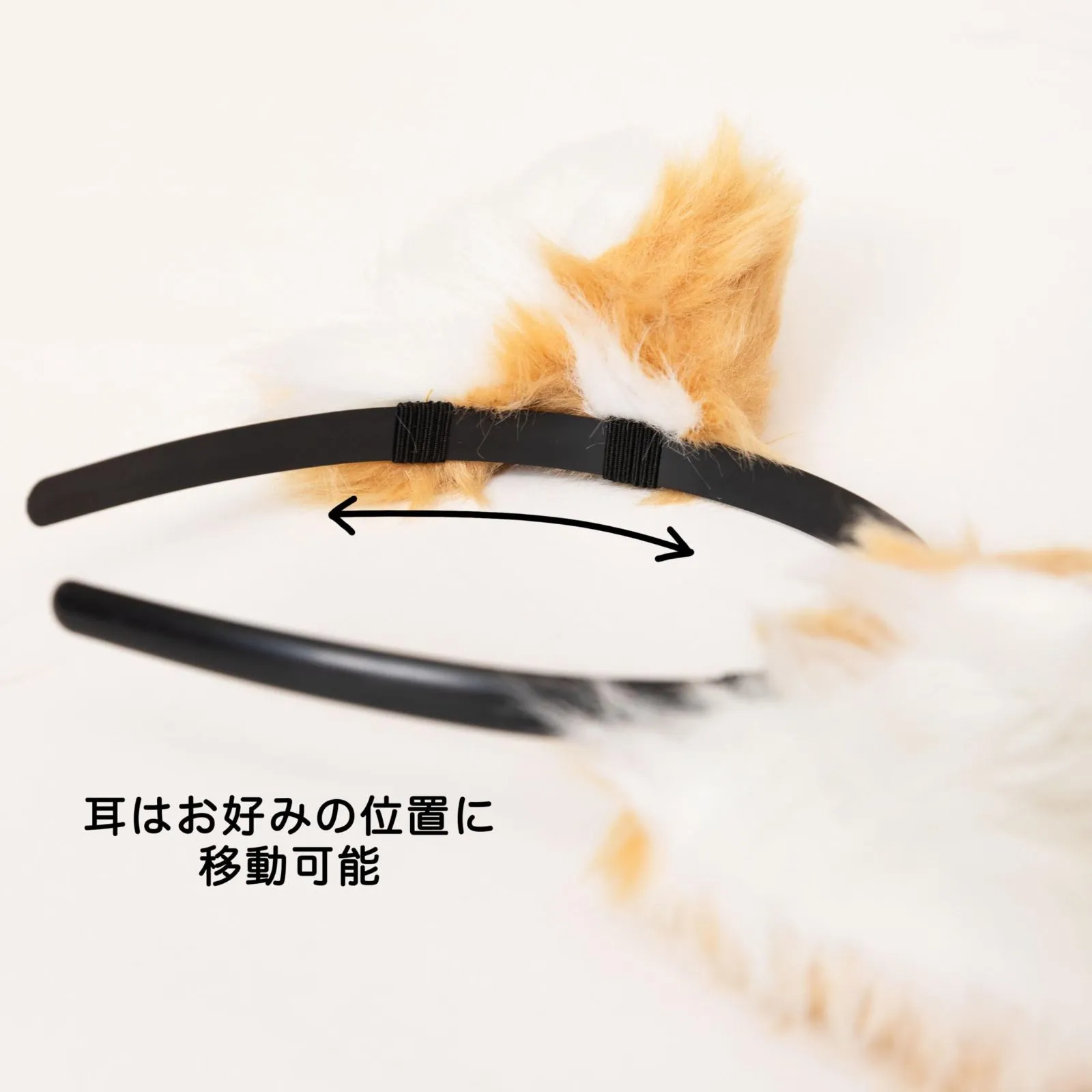 耳にはゴムが付いていて土台のカチューシャに差し込むタイプなので、立ち耳~たれ耳と好きな位置に稼働出来ます。