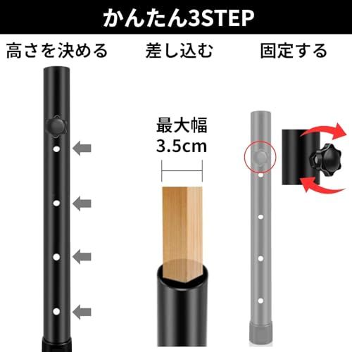 取り付けは工具不要で簡単。脚に差し込むだけで設置完了。室内・屋外問わず使用でき、イベント用テーブルや作業台、キャンプ用テーブルなどにも幅広く対応します。