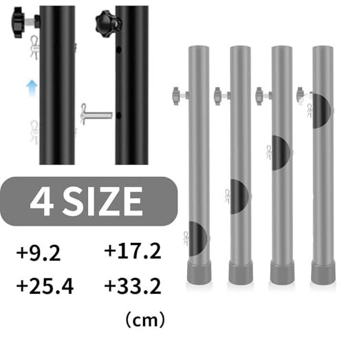 この商品は、折りたたみテーブルの脚部に装着することで、テーブルの高さを簡単に調整できる脚エクステンダーです。ストレート脚とベント脚のどちらにも対応しており、標準的な折りたたみテーブルの機能性を拡張します。