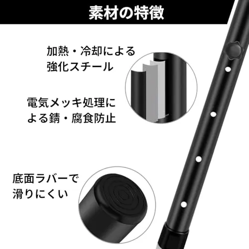 素材には耐久性の高いスチールを採用。頑丈で錆びにくく、長く使える構造です。脚先には滑り止め加工が施されており、安全性にも配慮しています。