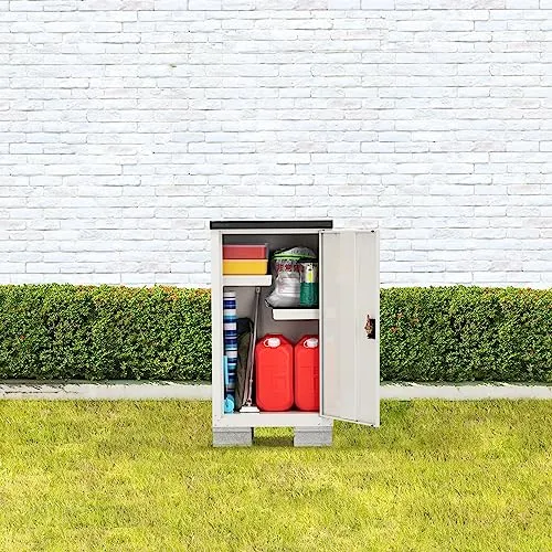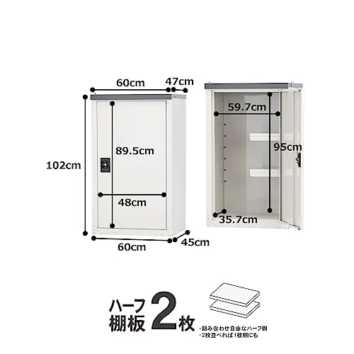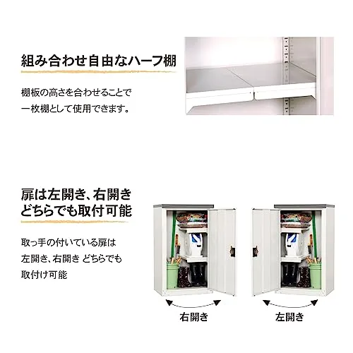 グリーンライフ 物置 収納庫 屋外 小型【日本製】 ハーフ棚板2枚・鍵付き・扉式(幅60×奥行47×高さ102cm)ライトグレー 錆に強い 調整可能な可動棚 TBJ-102HTri