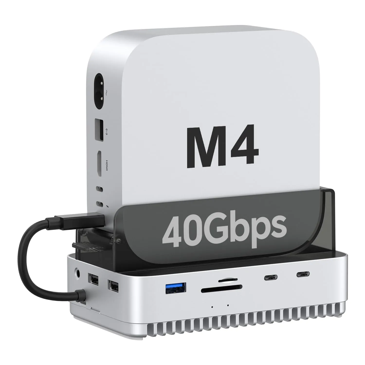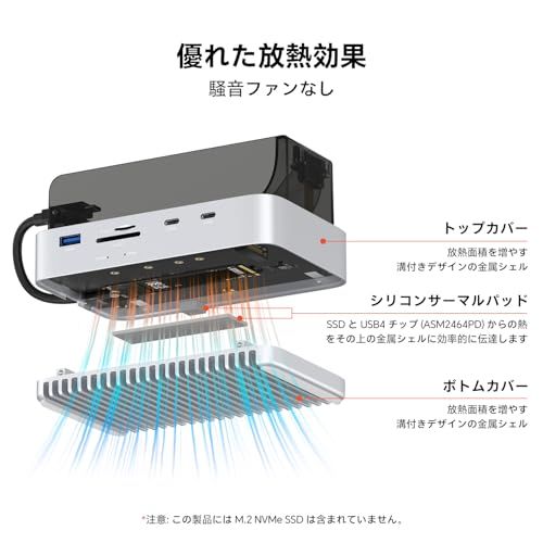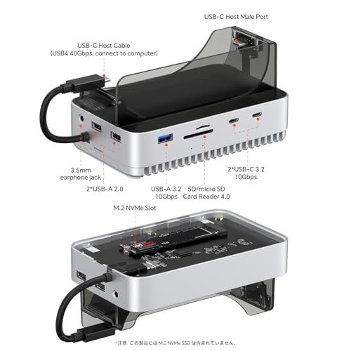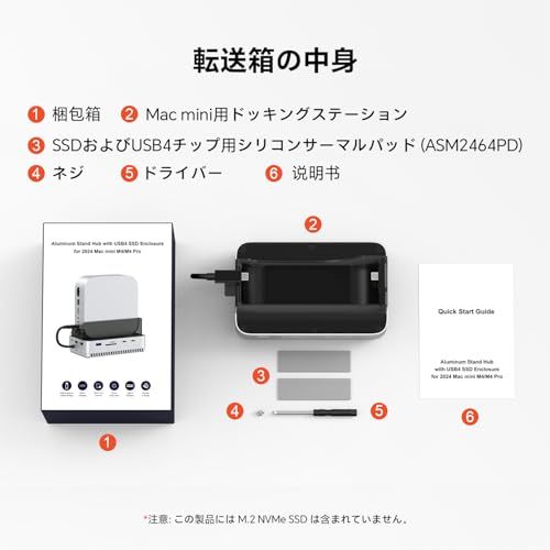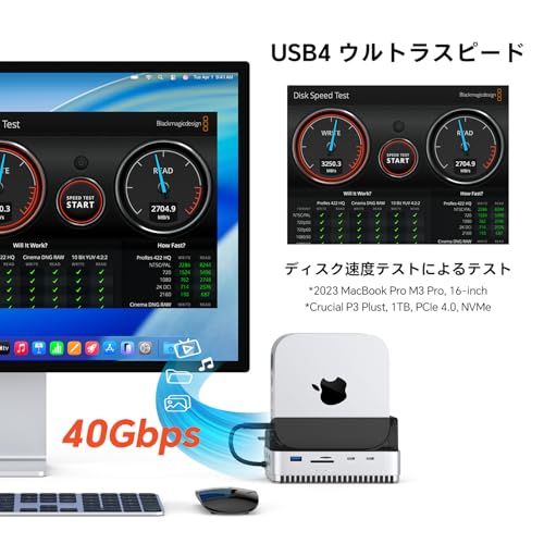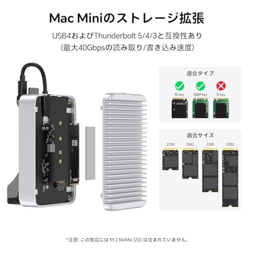 Qwiizlab Mac mini M4/M4 Pro スタンドハブ 40Gbps NVMe SSDエンクロージャ付き ドッキングステーション USB-A 10Gbps TF/SD 4.0カードリーダー 312MB/秒 USB-A 2.0 M.2 PCIeri