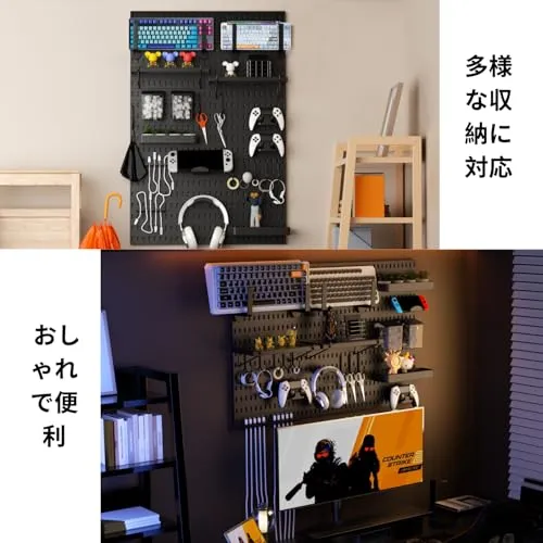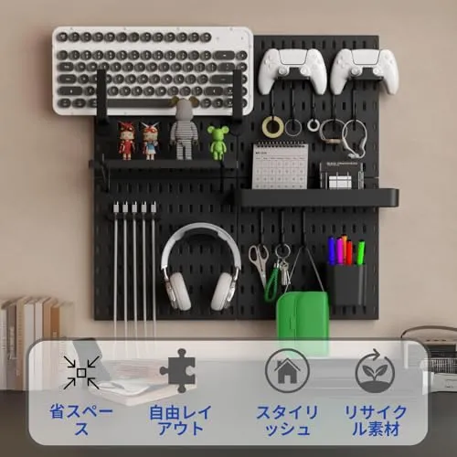 【ご自宅をスタイリッシュに整理】このペグボード壁面収納キットは、壁面整理、クラフトルーム収納、装飾品のディスプレイ、ゲーム環境のセットアップに最適です。オフィスオーガナイザー、ゲーム用ペグボード、バスルーム収納など、様々な用途でお使いいただけます。