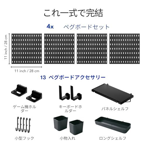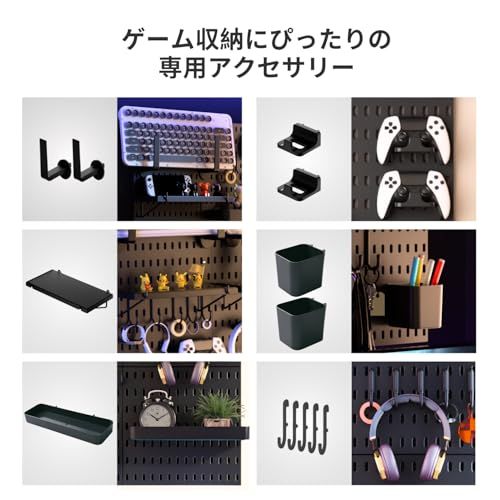 Keepo ペグボードコンビネーションキット モジュラーアクセサリー付き ゲーム用壁オーガナイザー クラフト/オーナメントディスプレイ用 寝室/オフィス/自宅用ペグボード (ブラック, 56×56cm)ri