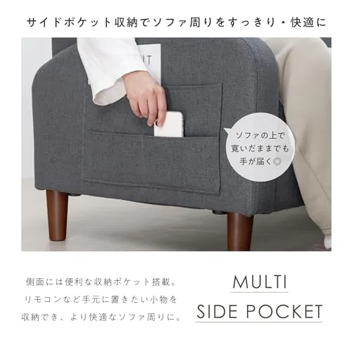 【便利な収納ポケット】ソファの側面には、リモコンや雑誌などを収納できるポケットを設置。日常生活で必要なものを手元に置いておけるので、快適なリビング空間を保つことができます。
