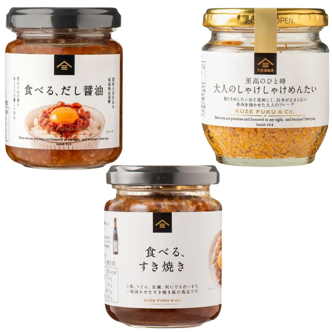 食卓を贅沢にする、人気の「大人のしゃけしゃけめんたい」「食べるだし醤油」「食べるすき焼き」をセットにしました。あつあつご飯にはもちろん、お酒のおつまみや料理のアクセントにも最適。それぞれの素材の旨みが凝縮された、贅沢な味わいをぜひお楽しみください。・賞味期限、製造日はラベルに記載