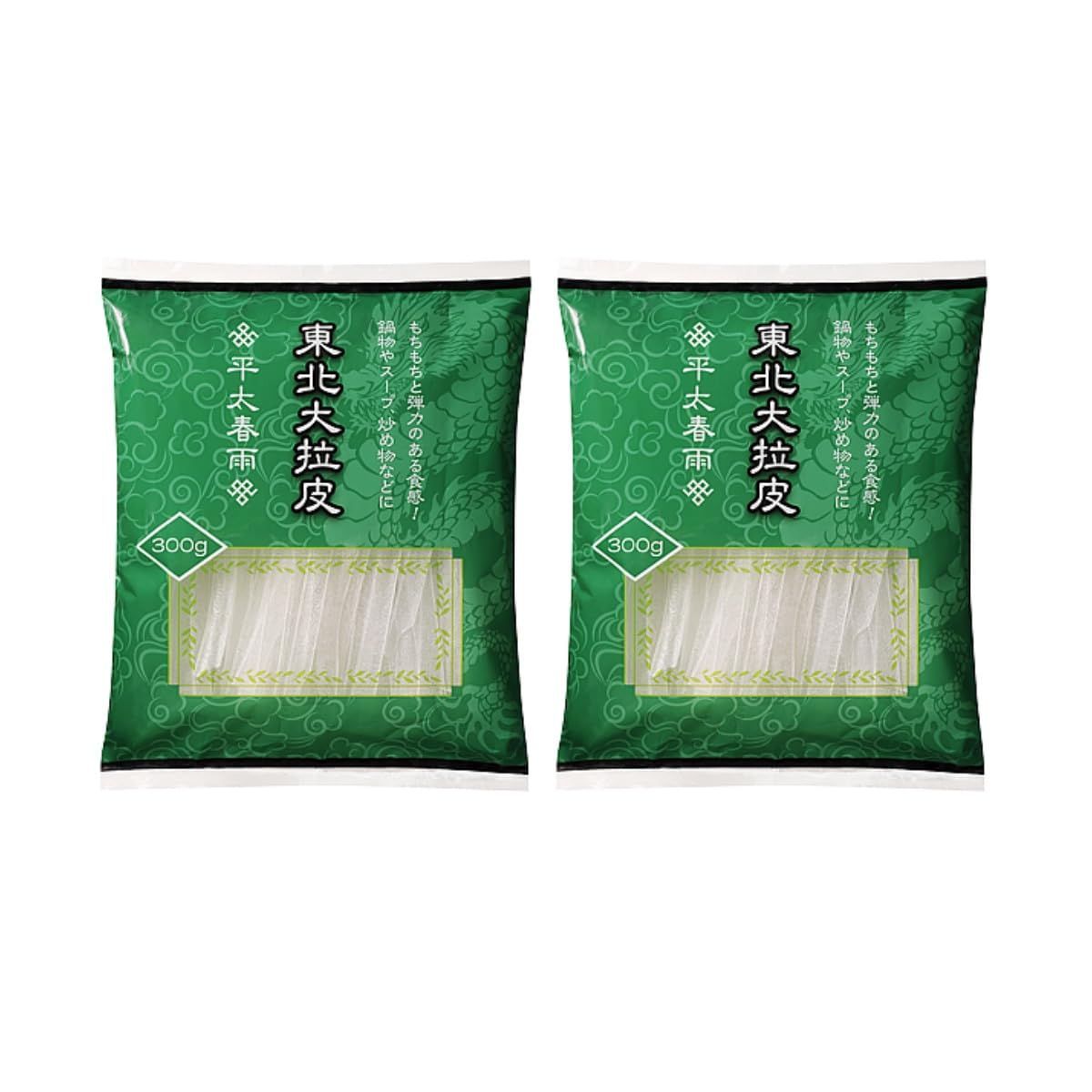 【2袋】東北大拉皮(平太春雨) 300g × 2袋 鍋にピッタリ。ツルツルとしたのどごしと、モチモチと弾力のある食感が楽しめる、極太の春雨です。コシが強いので、鍋物の具材に最適。火鍋やトッポギソースとの相性もよいです。