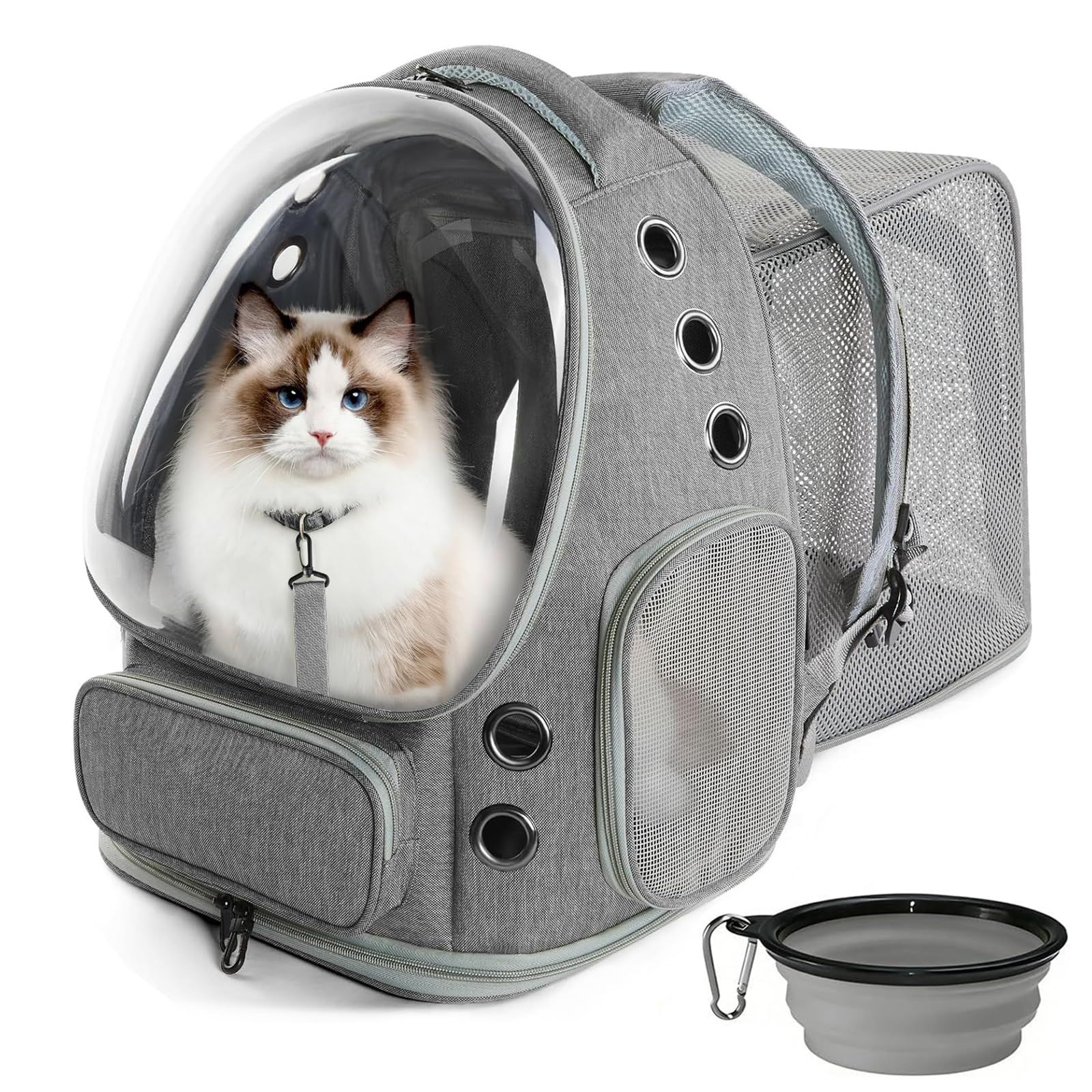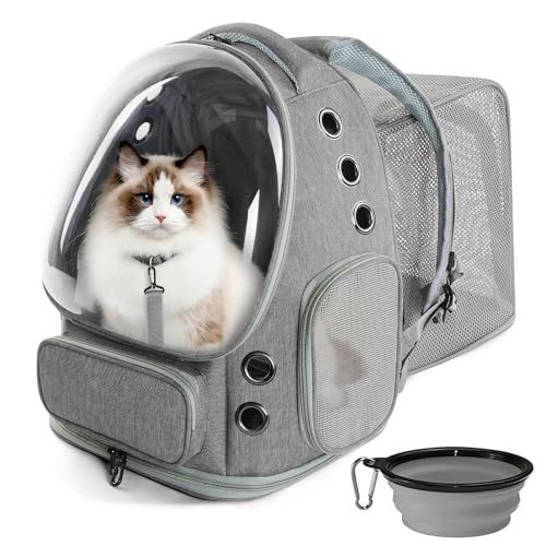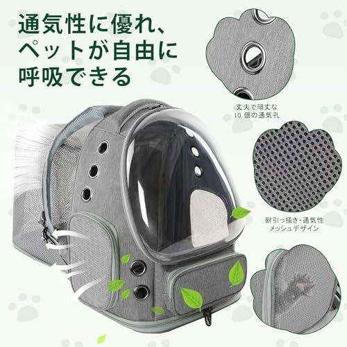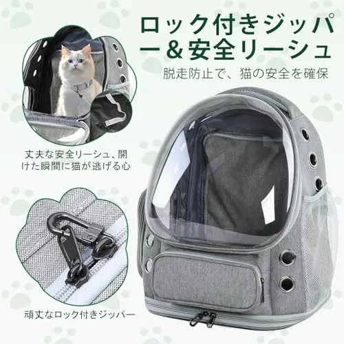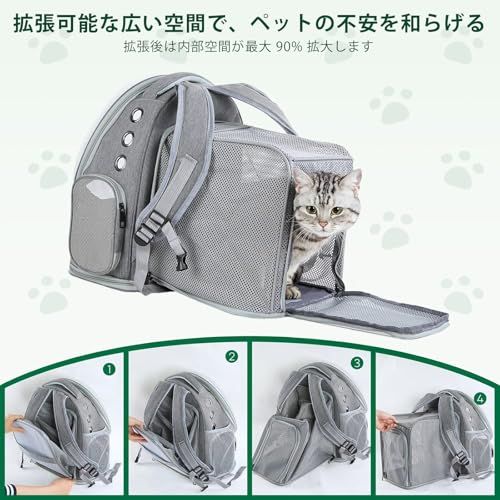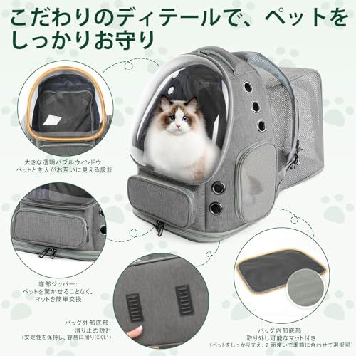 猫 犬 キャリーリュック 拡張可能な ペットハウス バブル窓 通気性 大容量 折りたたみ式 航空適用 旅行/ハイキング/ドライブ対応 グレーCH