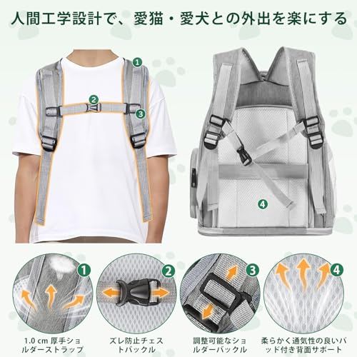 5.多シーン対応で携行性抜群: ペットリュック・ペットキャリーリュックとして、調節可能なショルダーベルトと胸バックルで肩への負担を軽減し、安定した装着感を実現。折りたたみ式設計で未使用時はコンパクトに収納でき、航空会社適用に対応。ハイキング・キャンプ・日常のお出かけまで、多様なシーンで活躍する汎用性の高いアイテムです。