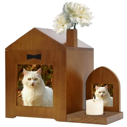 aleawol ペット 仏壇 木製 15x15x20cm 大型 ペット骨壷収納 愛犬 愛猫 お祈り メモリアルハウス かわいい ペット供養 フォトフレーム付き、小型犬 中型犬 大型犬 猫 ハムスター用 (ブラウン)CH