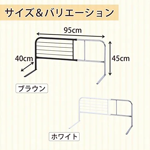 不二貿易 ベッドガード 転落防止 布団ずれ防止 幅95~120×奥行40×高さ45? ブラウン ハイタイプ 幅調整可能 伸縮式 ベッドフェンス 大人 完成品 15565CH