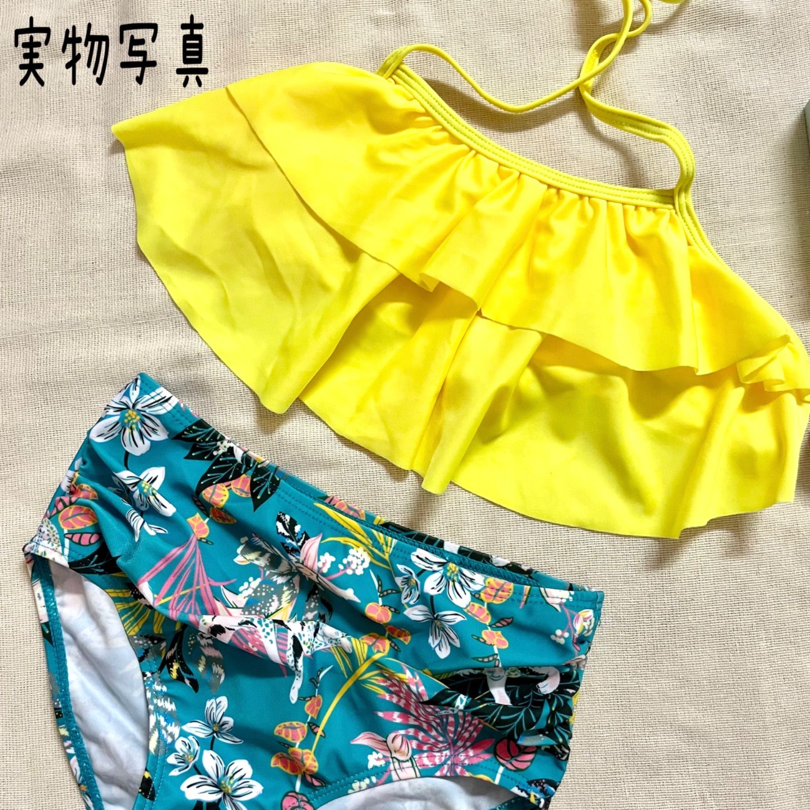 ●サイズ 110〜120(110/116) トップス フリル部分丈 14cm 肩紐長さ 片方 36cm パンツ 丈22cm ウエスト 23cn 120〜130 (122/128) トップス フリル部分丈 15.5cm 肩紐長さ 片方 36cm パンツ 丈23cm ウエスト 25cn ※柄の配置はすべて異なります。 ★∻∹⋰⋰ ☆∻∹⋰⋰ ★∻∹⋰⋰ #kajuberrybabykids水着 ※こちらは海外製品になります。 (ノーブランドです) 日本製品と比べ、縫製など甘い部分がございます。海外製品にご理解頂きご購入お願い致します♡ ※採寸は平置き採寸になります。 素人採寸の為、多少の誤差はご了承下さいます様お願い致します♡ 韓国キッズファッション 韓国子ども服 海 海水浴 子ども服 おうち遊び プール 女の子 可愛い マリンスポーツ 姉妹コーデ パンツ ビキニ