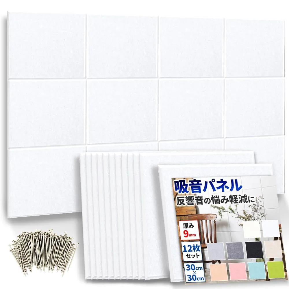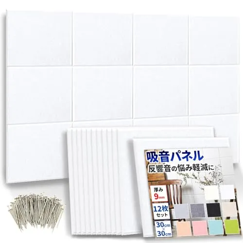 D★公式【 DIYで簡単!騒音対策 】防音ファストラボ? 吸音パネル 「hisoka」スクエア型 12枚セット ( 音の悩みの軽減に ) 吸音材 防音材 防音シート (縦30cm×横30cm 厚さ9mm) ホワイト