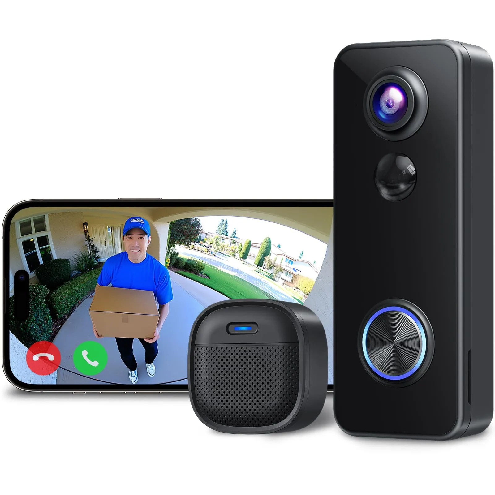 【2K超高精細・プロ級ナイトビジョン】ドアベルカメラは25601440ピクセルの2K超高精細画質とF2.0大口径レンズを採用し、業界標準比150%高い解像度で配達員の表情から荷物のラベルまでくっきり認識可能。高感度イメージセンサーで、逆光時でも訪問者の顔を明るく鮮明に撮影。さらにプロ仕様赤外線ナイトビジョン搭載で、完全な暗闇でも最大10m先まで視認可能。不審者が訪れた場合も、髪型や服装の特徴をはっきり確認できるので、防犯対策に最適です。