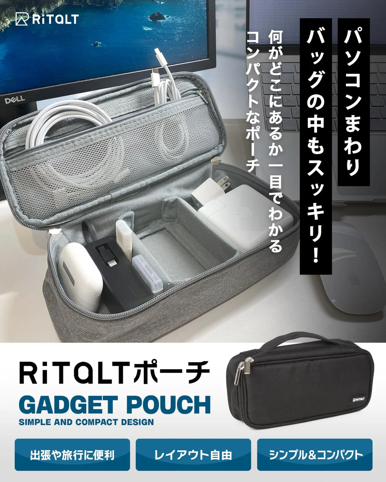 ガジェットポーチ ガジェットケース 小型 ポーチ 小さめ 小物入れ トラベルポーチ 旅行用 出張 仕事 (ブラック)