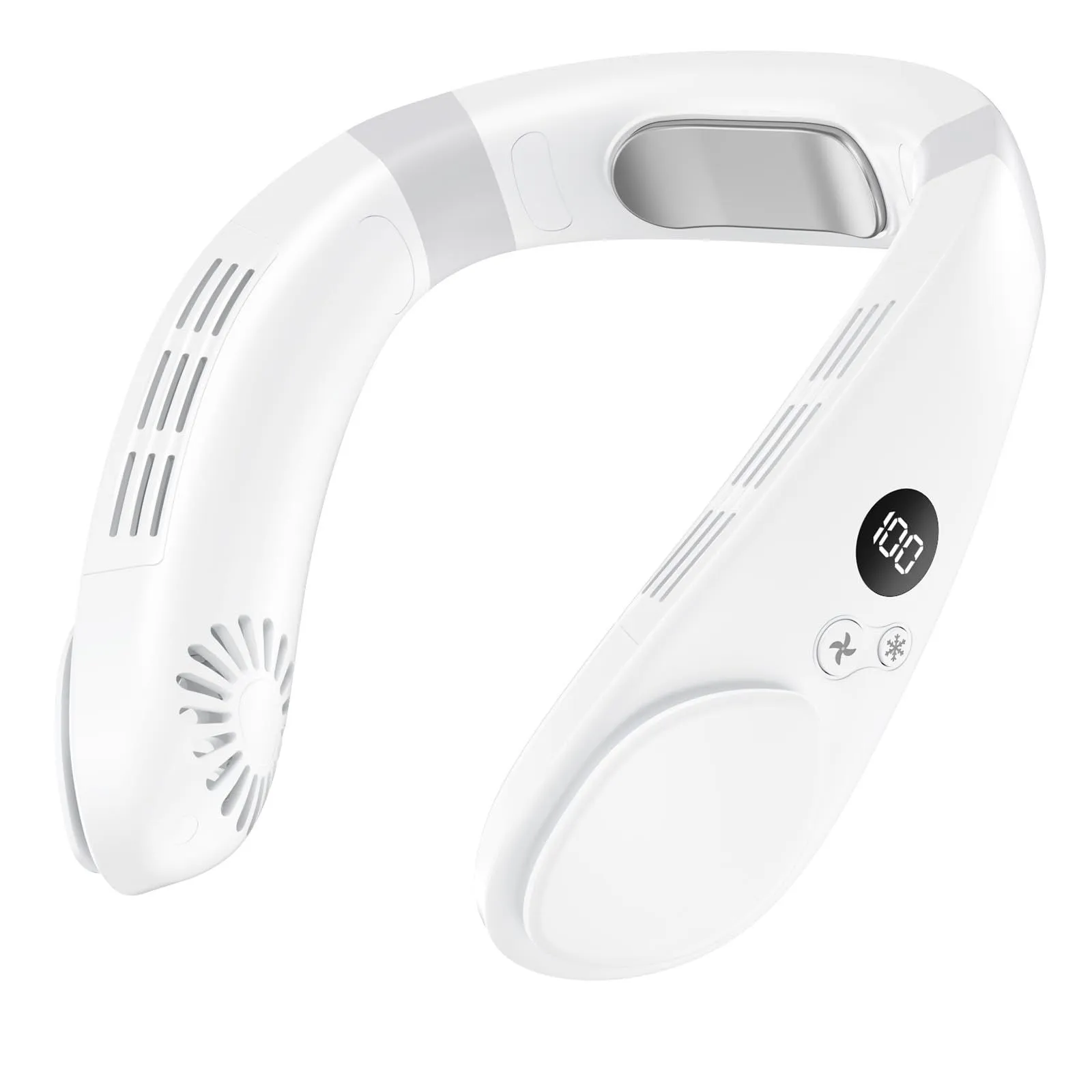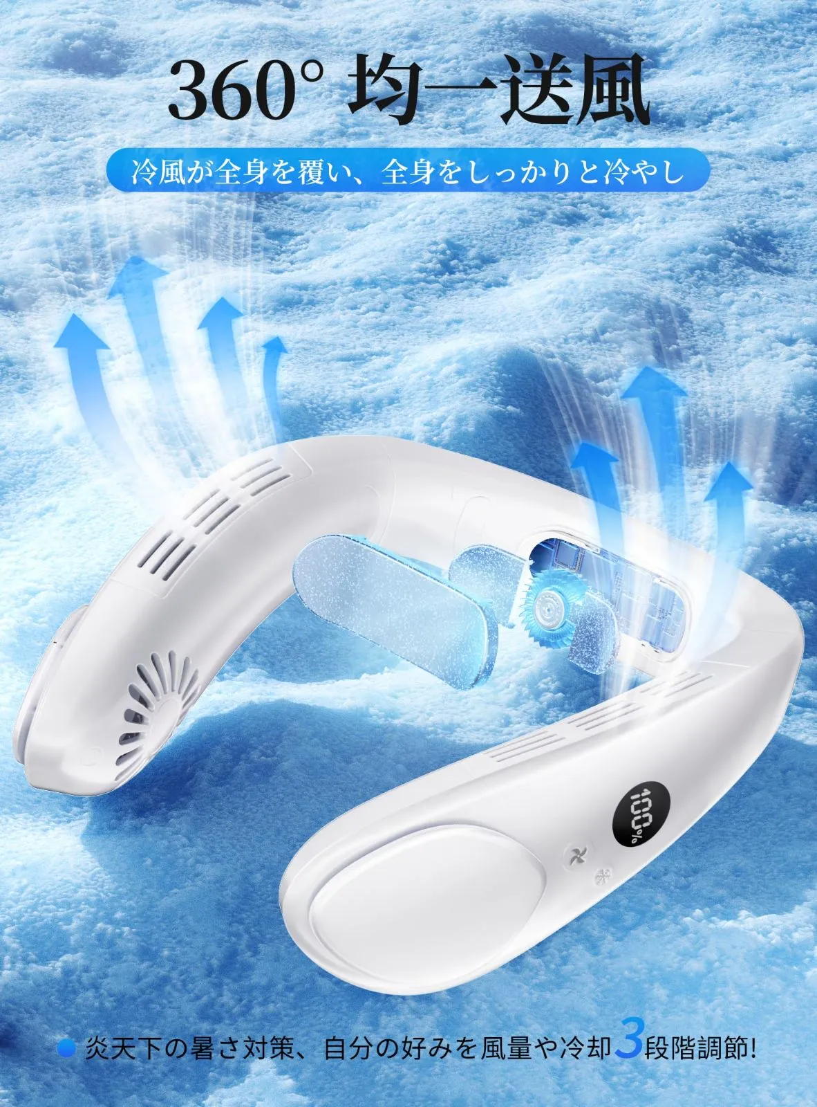 「夏革新型・首掛け扇風機」ネッククーラー ネックファン 携帯扇風機 小型 3段階風力調節 冷却プレート搭載 20dB静音 超軽量 羽根なし モバイル扇風機 強力 大風量 LEDディスプレイ表示 4400mAh大容量 長時間稼働 Type-C充電式 熱中症対策 花火大会/通勤通学/アウトドア/夏キャンプ/プレゼントなど(White)