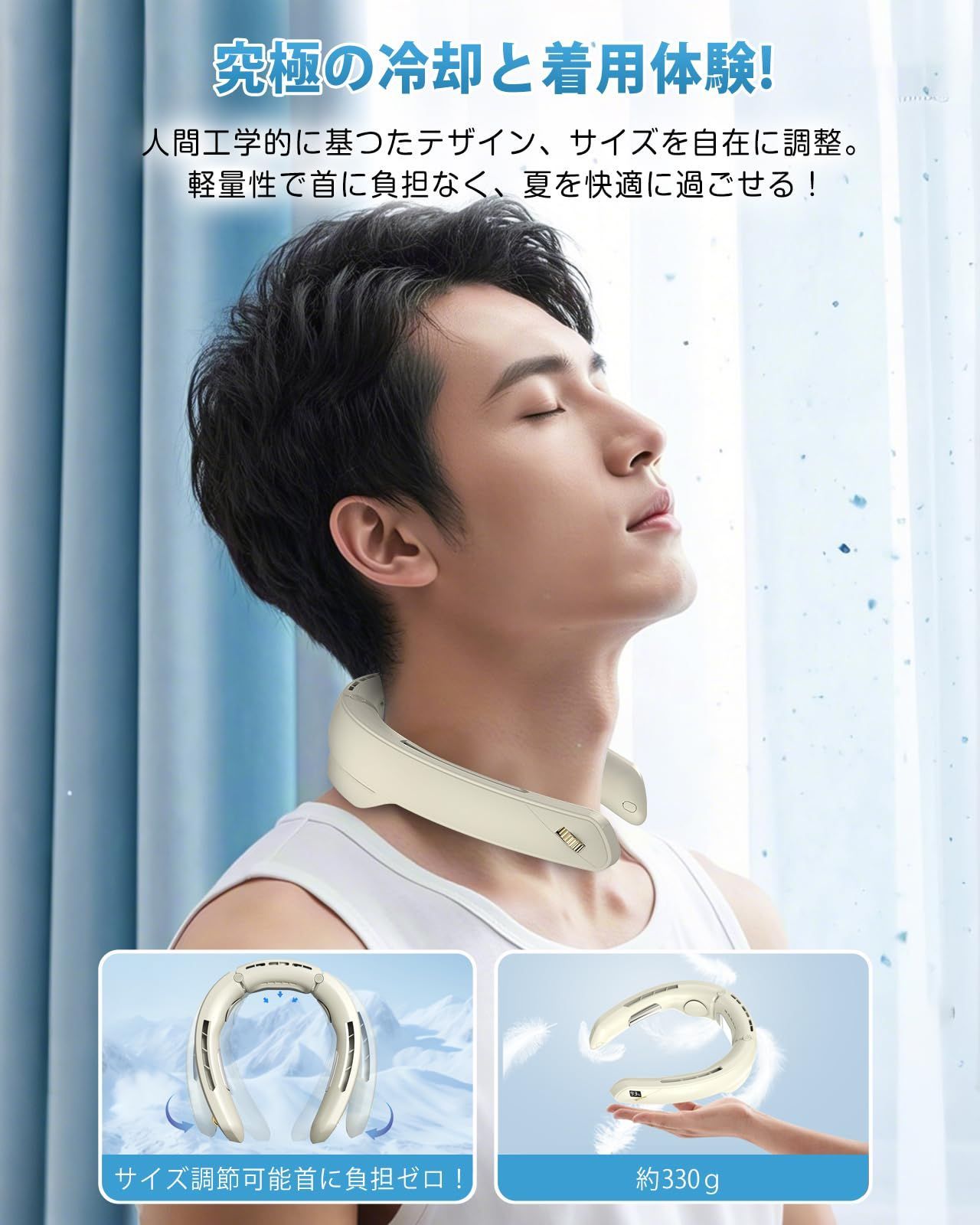 【軽やかフィット感・快適な使用感】当社の首掛けクーラーはたったの330g!長時間装着しても首に負担をかけない、圧迫感ゼロ!人間工学に基づいた3D曲線デザインで、首にぴったりフィット。35dB以下の超静音設計だから、図書館やオフィスでも周りを気にせず使えます。軽量で長時間つけていても疲れない、理想的な夏の首 冷却アイテムです。