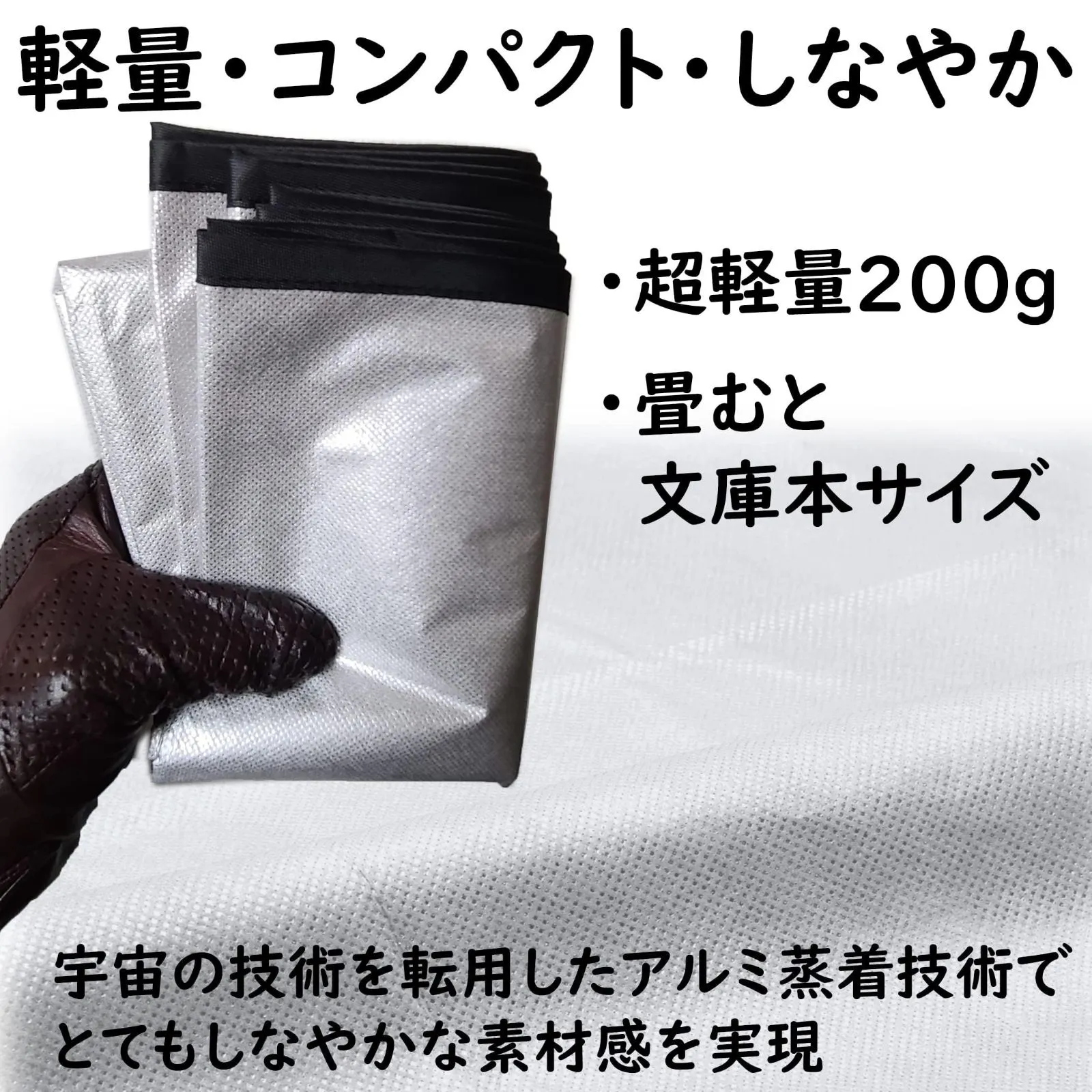 カサカサ音が少ない、静音タイプ。軽量 コンパクト 持ち運び 携帯 便利 な プレミアム アルミ4層ブランケット( サバイバルシート エマージェンシーシート ) です。 急な気温変化や災害などの緊急時に対応するために開発されたアルミの簡易毛布保温 スペース暖シート です。 防災リュック、車の中 に常備、持ち運びやすく場所を取りません。
