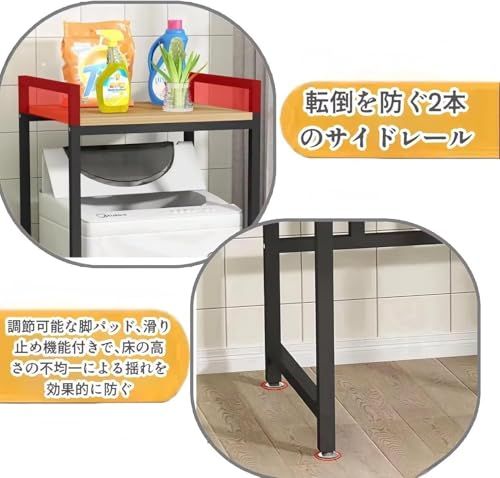 【高い安定性】この乾燥機ラックは、強化スチールフレームを使用し、最大80kgの耐荷重に対応。重い洗濯機や乾燥機をしっかり支え、長期間使用しても安定性を提供します。さらに、ラックの側面に2本のサイドレールが設けられており、物が落ちる心配もありません。