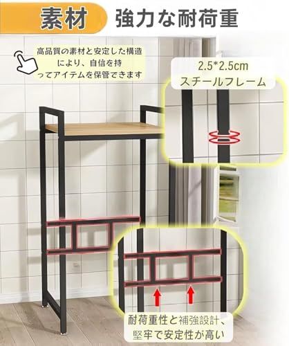 洗濯機ラック 縦型 1段式 65.5×56×128cm 上置き収納棚 洗濯機上の棚 バスルーム トイレ収納 洗濯機上・乾燥機上対応 頑丈 多機能 省スペース 組み立て簡単 日本語説明書付きri
