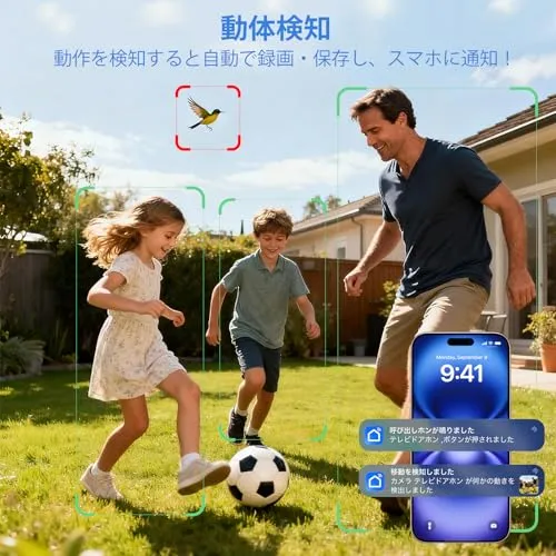 【1枚多役・遠隔監視来客対応動体検知防犯】2.4GHz Wi-Fiでスマホと接続すると、外出先からでもアプリでリアルタイム映像を確認しながら来訪者に応対できるインターホン。双方向通話に対応しており、玄関ドアホンが押されると、スマートフォンにビデオ通話通知が即座に届きます。動きを検知すると自動で録画・スマホに通知しますので留守中の対応・遠隔監視・防犯カメラとしても活用できるカメラー付きのテレビドアホンです1つのアプリで複数のスマホを同時に登録できるため、忙しい時でも家族が代わりに来客対応できます。