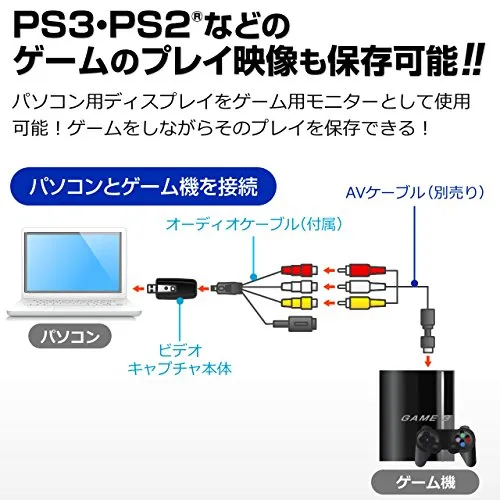 スナップショットボタン付きで静止画の保存も可能です。PS3・PS2などのゲームのプレイ映像も保存可能です。
