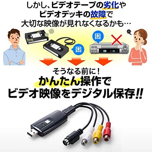 D★サンワダイレクト USBビデオキャプチャー VHS/8mmビデオテープ デジタル化 ソフト付 S端子 コンポジット 400-MEDI008