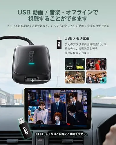 【車内が一気にエンタメ空間に!】アダプター価格で、AIBOXクラスの性能!オットキャスト 2025年最新モデルは、手頃な価格ながらも高性能を実現。YouTube・Prime Video・Netflix・IPTV でアニメや動画を満喫、さらに Spotify・LINE MUSIC で音楽も聴き放題。ドライブがもっと楽しくなります。家族や友人とのドライブ中でも、助手席の子供から大人まで、みんなが楽しめます。※転中でも、動画を再生することができますが、運転者以外の同乗者が走行中にマルチメディアを楽しむためのものです。