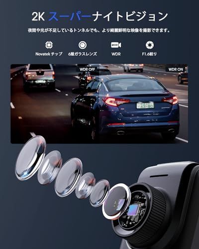 Avylet ドライブレコーダー 小型 前方 WiFi付き スマホ連携 2K 1440P 外付けGPSモジュール対応 超暗視 170°超広角 24時間駐車監視 WDR画像補正 エンジン連動 自動常時録画 衝撃録画 動体検知 Gセンサー 1.5インチ液晶画面CH