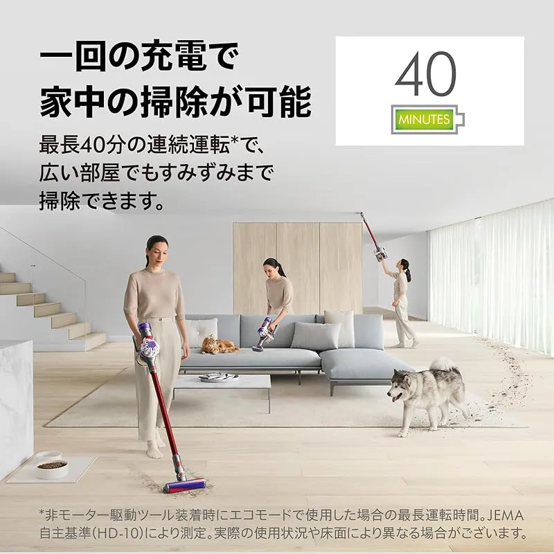 【変わらないパワフルな吸引力1】ダイソン デジタルモーター V8を搭載し、強力な吸引力と低い運転音を実現。