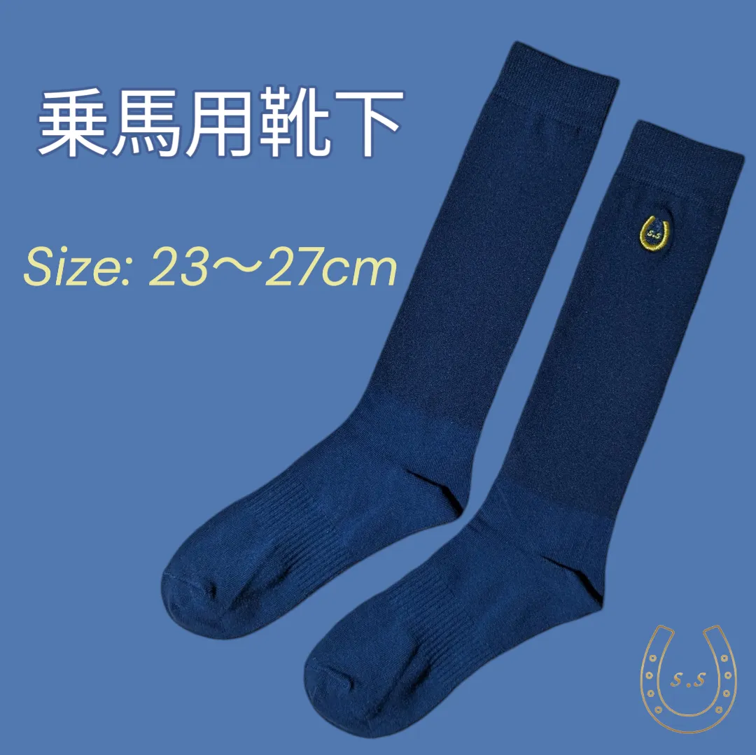 【乗馬用靴下】size : 23〜27cm #ネイビー#ゴールド#蹄鉄