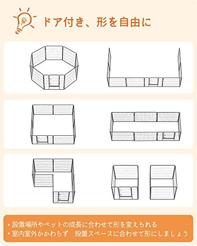 【カタチはアイデア次第】スペースに合わせて8つのパネルを活かして、長方型、正方型、八角型、L字型などに変更できます。ペットに窮屈な思いをさせる事なく、日常のトイレ訓練やハウストレーニングに便利なペットサークルです。サイズ:長方型:幅231x奥行77x高さ80cm、正方型:154x154x高さ80cm、八角型:直径200cmx高さ80cm