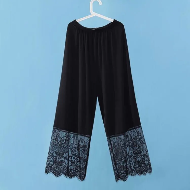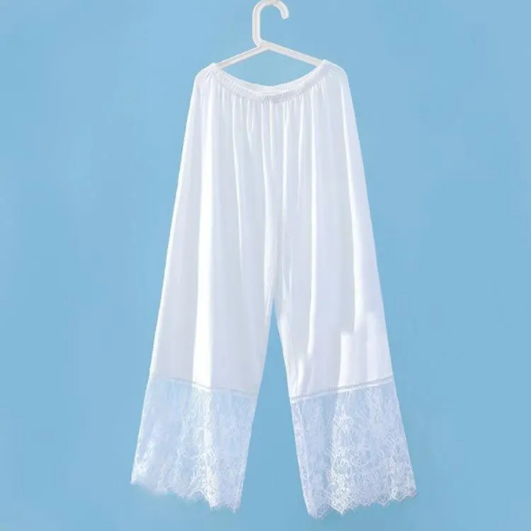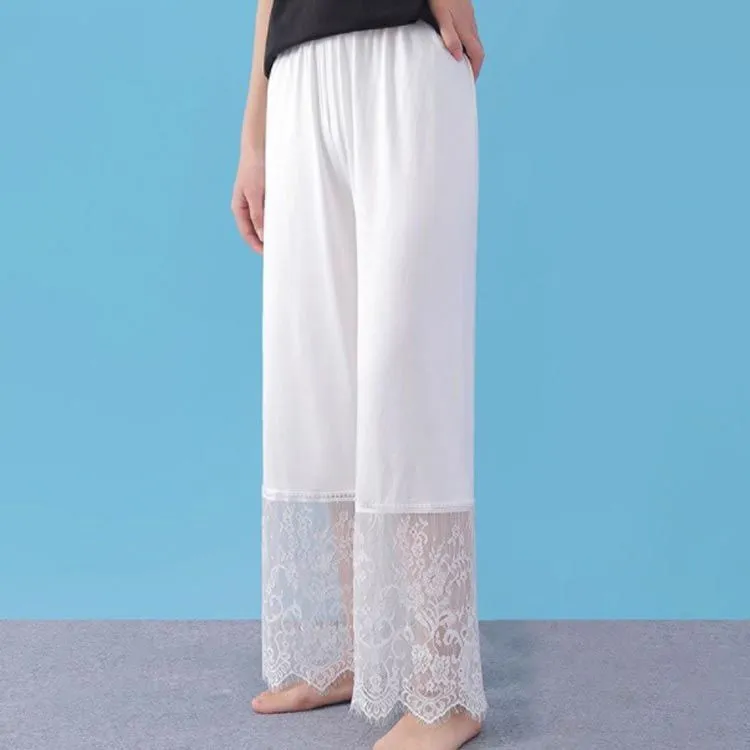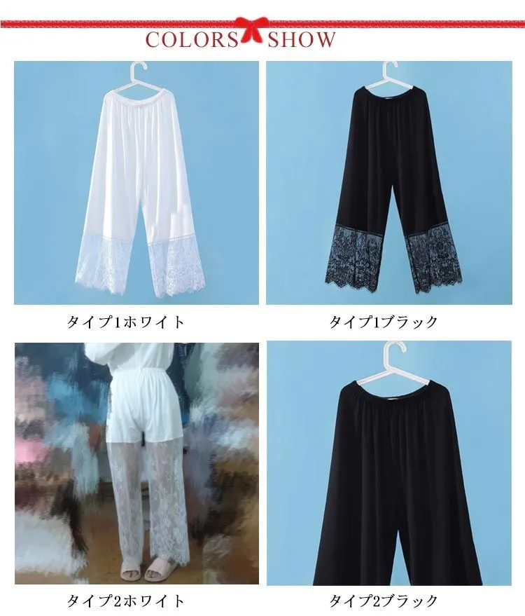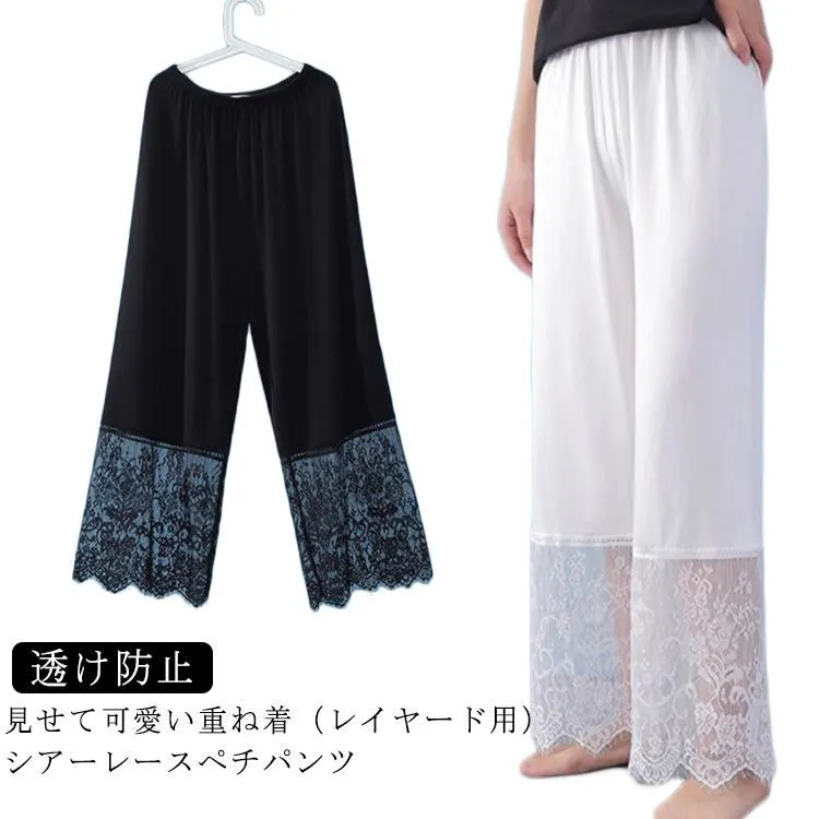 レディース インナーパンツ レイヤード用 ペチパンツ ワンピ下 重ね着用 透け防止 見せ ゆったり ワイドパン レース ウエストゴム スカラップレース 裾 裾レース 春夏秋