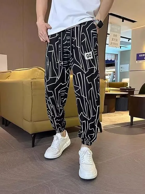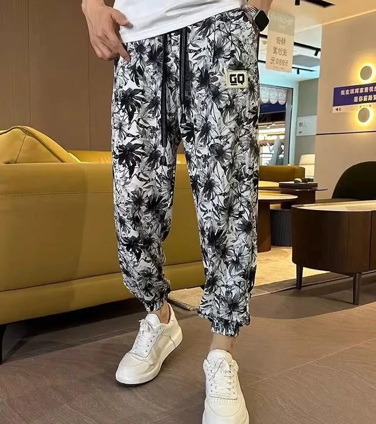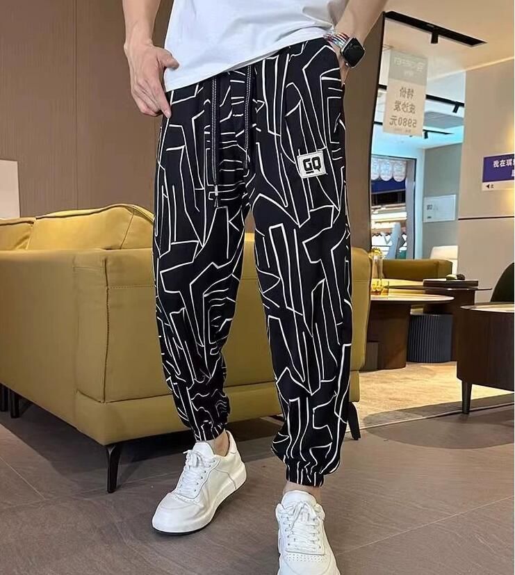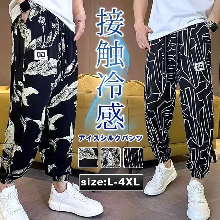 パンツ メンズ アイスシルク 接触冷感 ストレッチ スウェットパンツ ジョガーパンツ プリント柄 ズボン 夏服 涼感