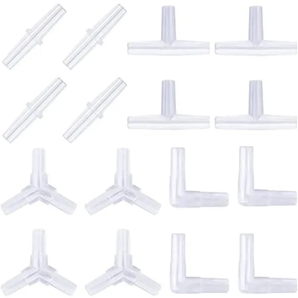 【仕様】エアーチューブコネクタ 16個セット 4x Y型コネクタ;4xT型コネクタ;4x L型コネクタ;4x I型コネクタ、カラー:透明色 外径6mm 内径4mmの標準タイプの エアチューブに最適。