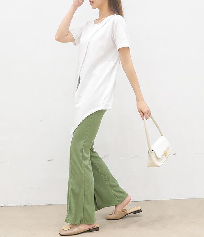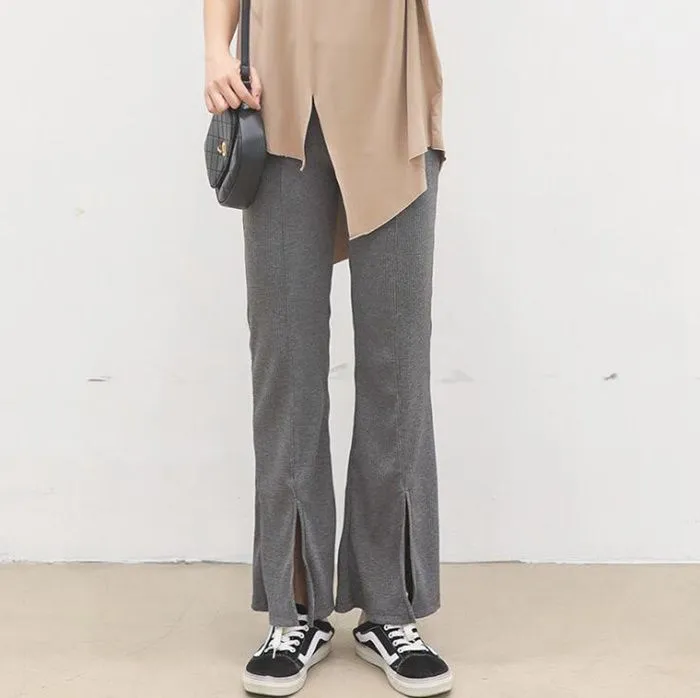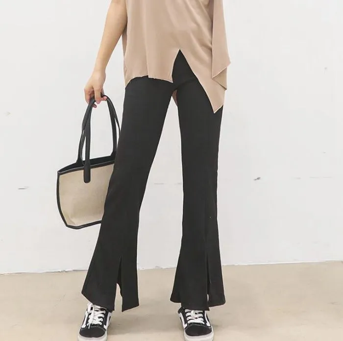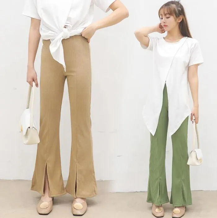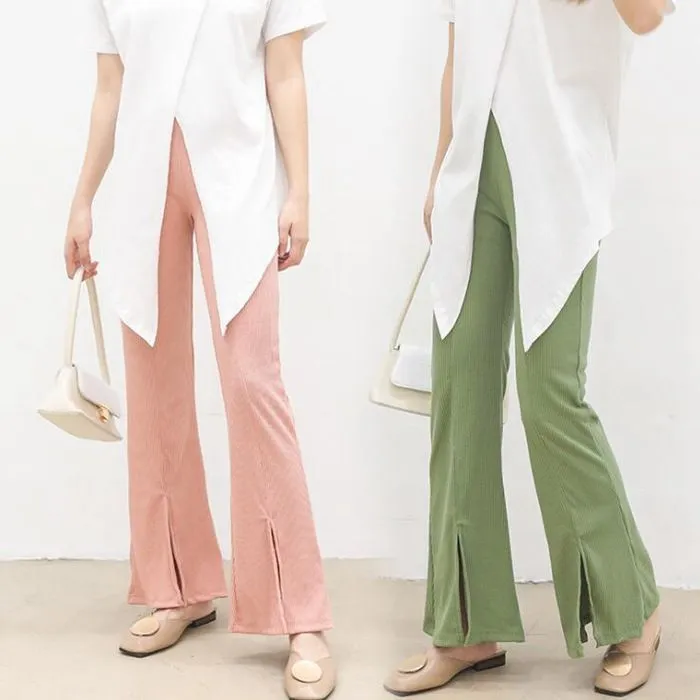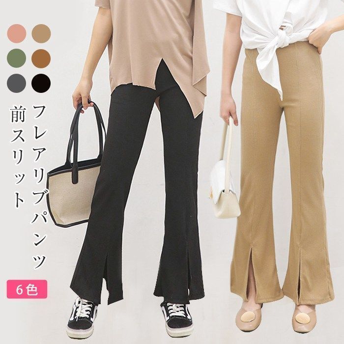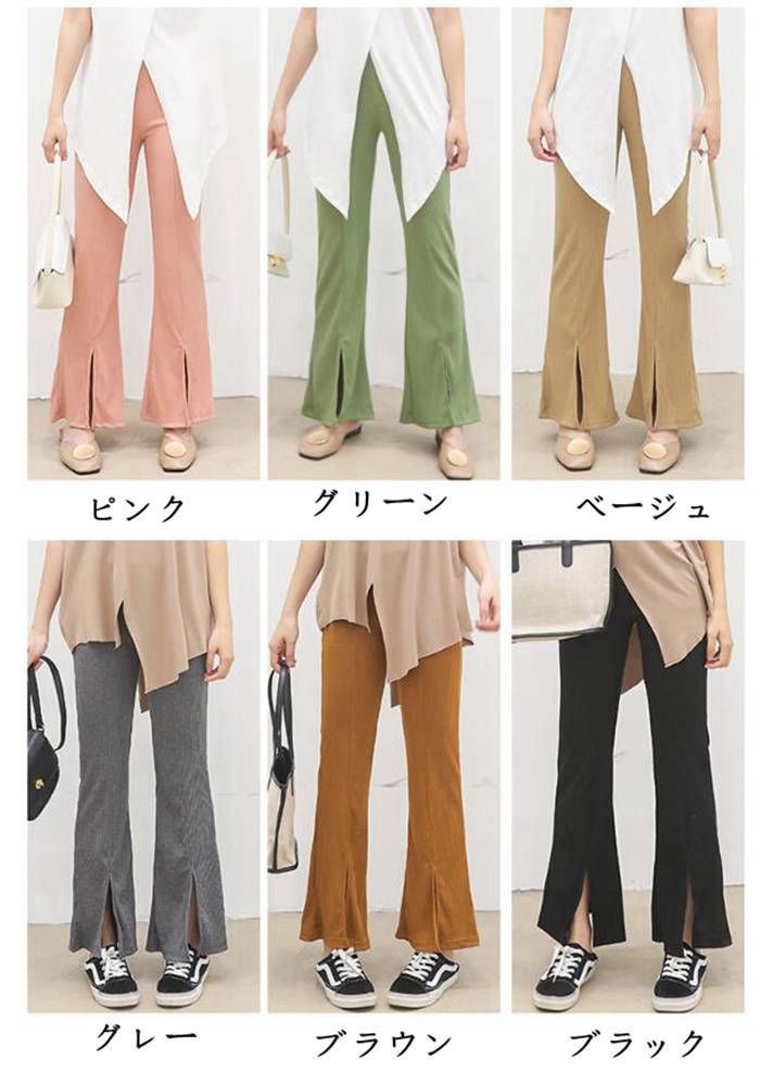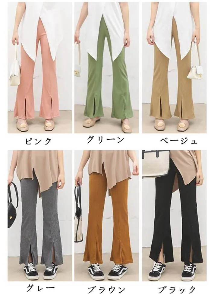 レギンス スキニーパンツ リブレギンス ハイウエスト フレア ワイド 前スリット 伸縮性 脚長 春 夏 秋 ボトムス