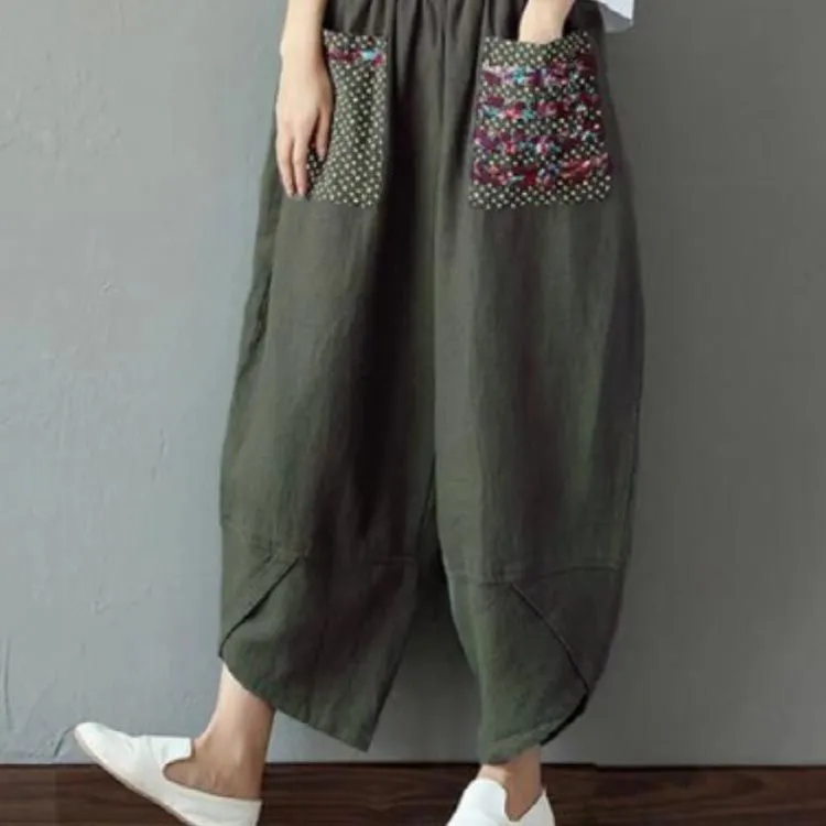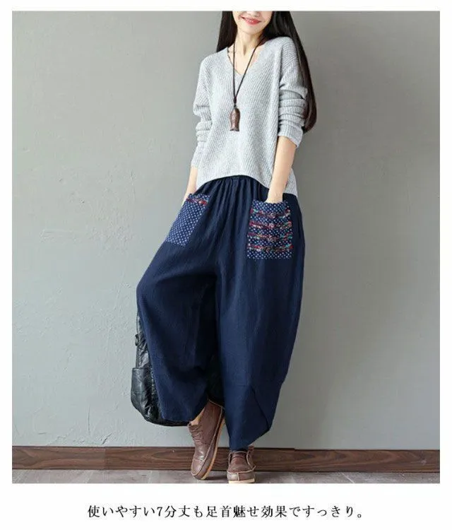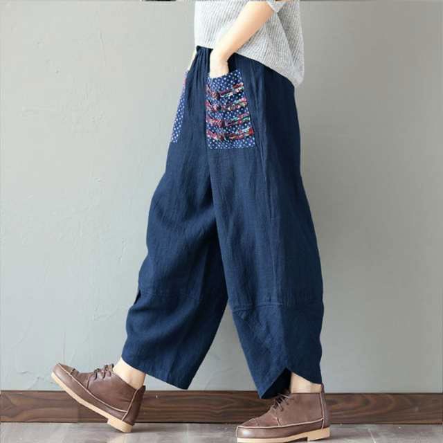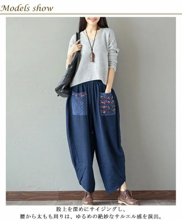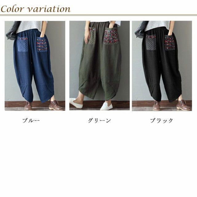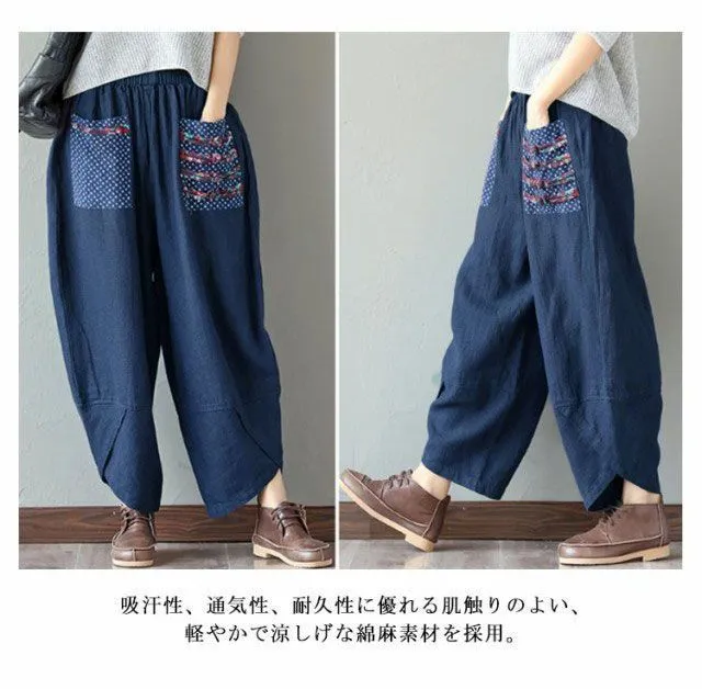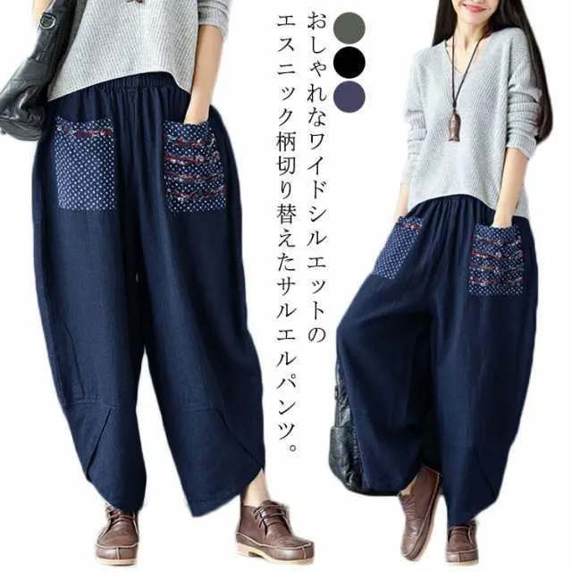 パンツ バルーンパンツ 民族風 コクーンパンツ ワイドパンツ ガウチョパンツ レディース 綿麻 春 秋 夏 ボトムス ロング丈 ゆったり 麻混 ウエストゴム ファッション 涼しい WHgD170
