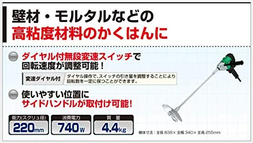 新品 HiKOKI(ハイコーキ) かくはん機 スクリュー径220mm AC100V 高粘度材料用 UM22V