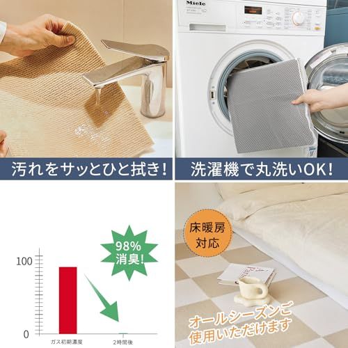【掃除もラクラク】 床保護マットの裏面の吸着効果で、めくれ上がることがなく、掃除機やロボット掃除機にも対応しているのでお手入れ簡単。防?加工でペットの粗相や飲み物のこぼれも簡単に拭き取れ、常に清潔を保てます。洗濯機で簡単に洗えるため、いつでも衛生的に保つことができます。