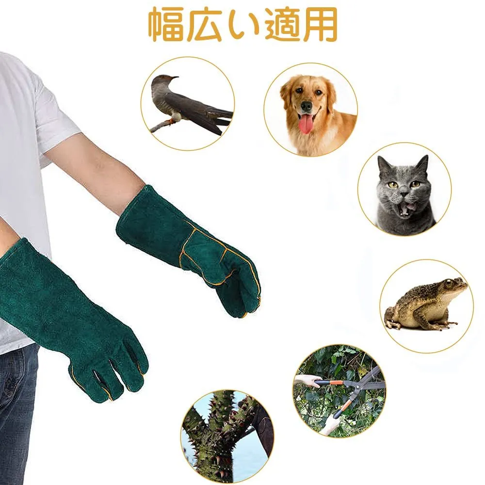 【在庫セール】耐熱性 耐摩耗性 保護手袋 厚手 噛みつき 噛み付き防止手袋 引っかき 35cm ペット用握り 肘 厚い安全手袋 ロング 猫 グリーン 犬 ペットグローブ 爬虫類 [サムコス] 園芸