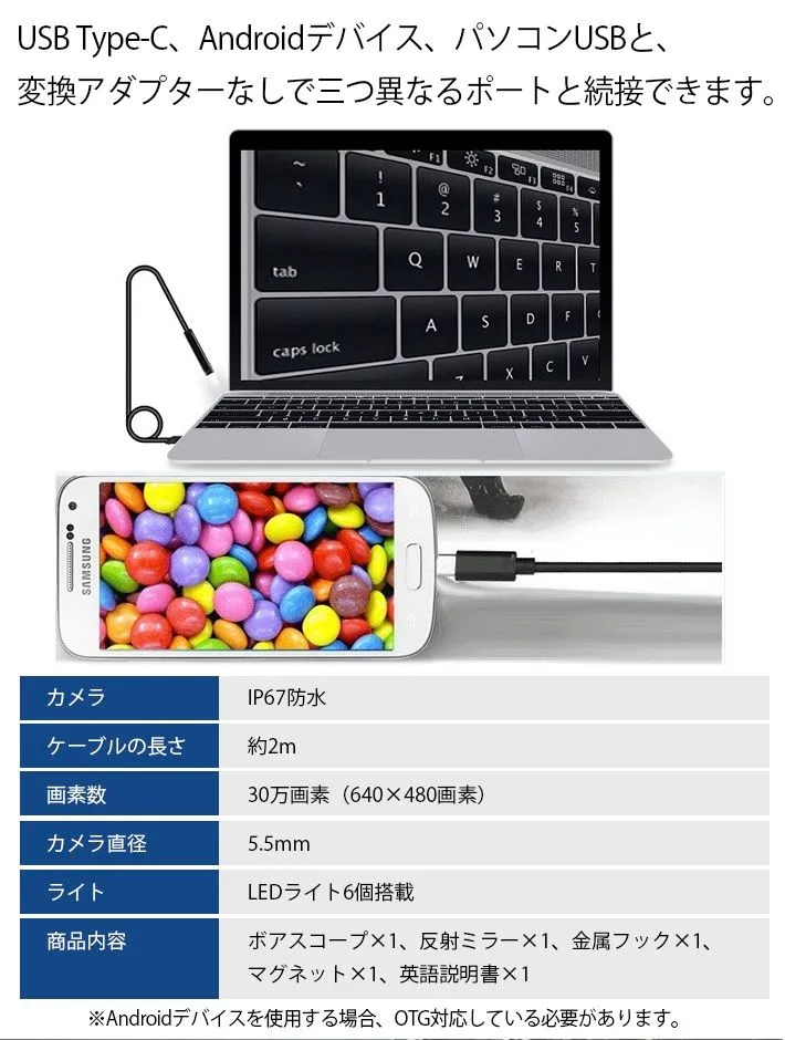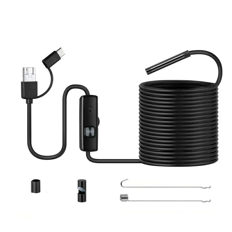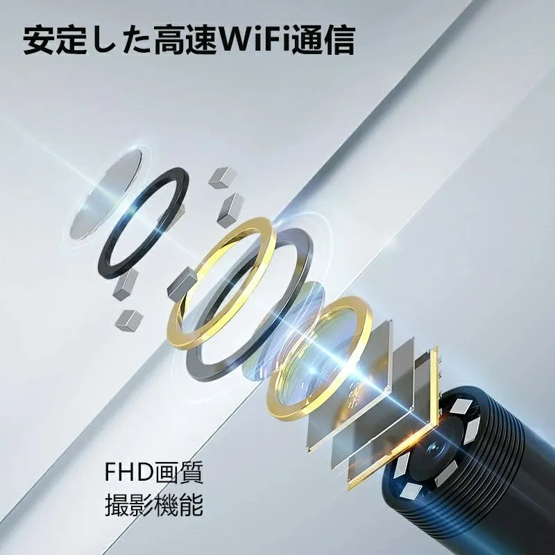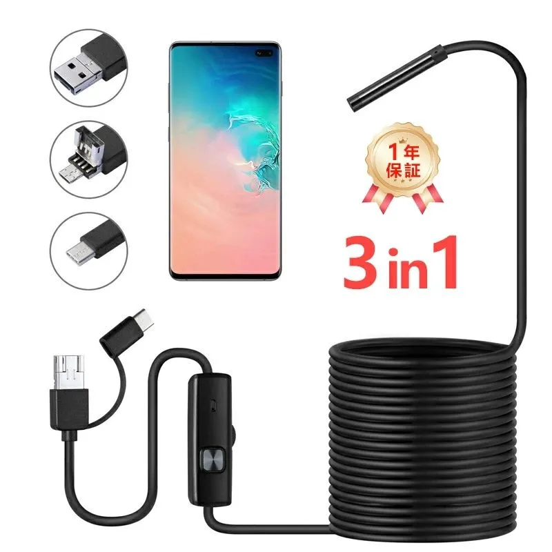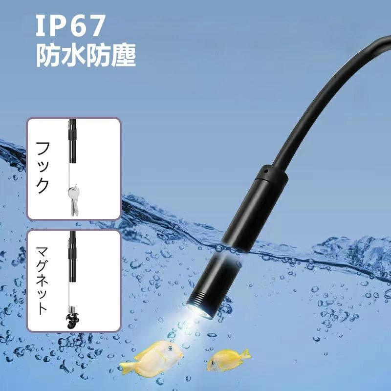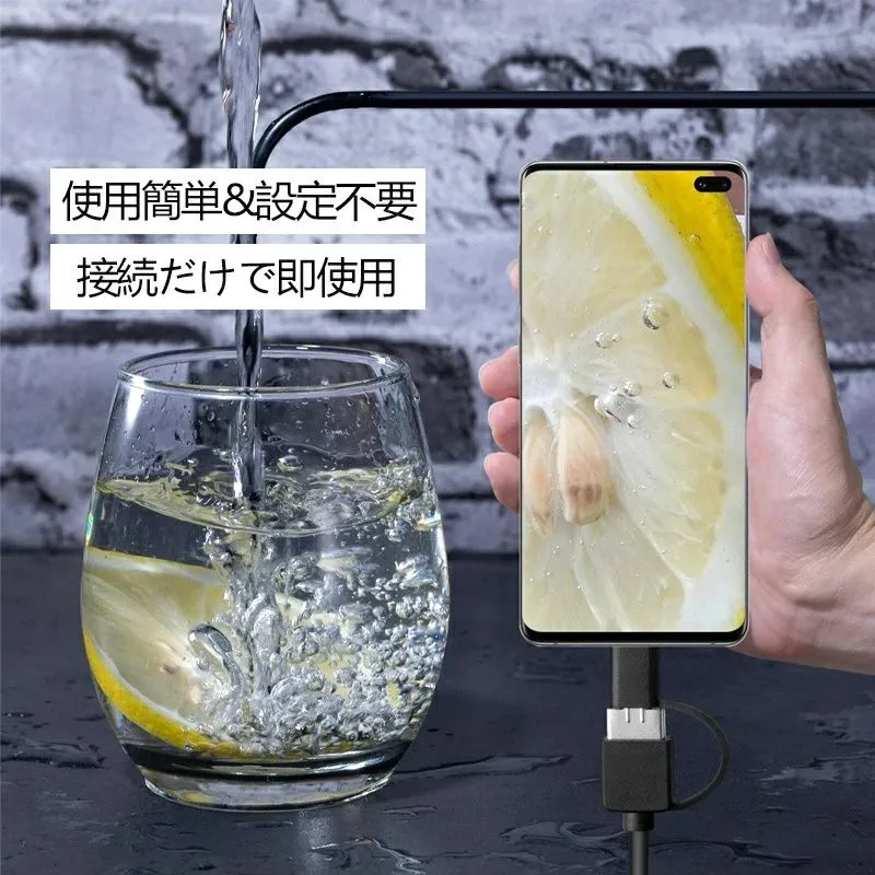 ファイバースコープ 200万画素 工業用内視鏡カメラ 5.5mm極細レンズ スネークカメラ IP67防水 配管カメラ 専用アプリ付き TYPE-C+対応 lightning接続 5Mケーブル