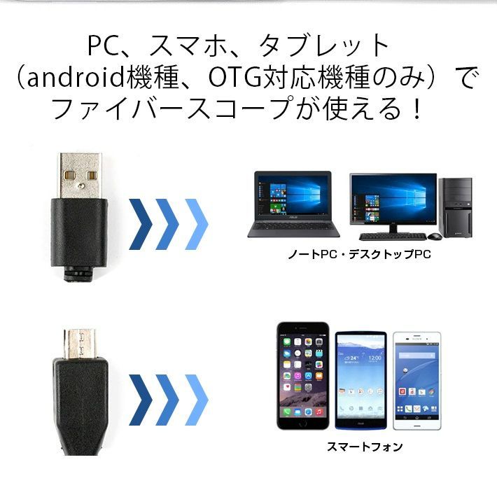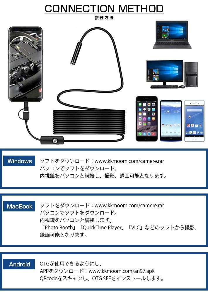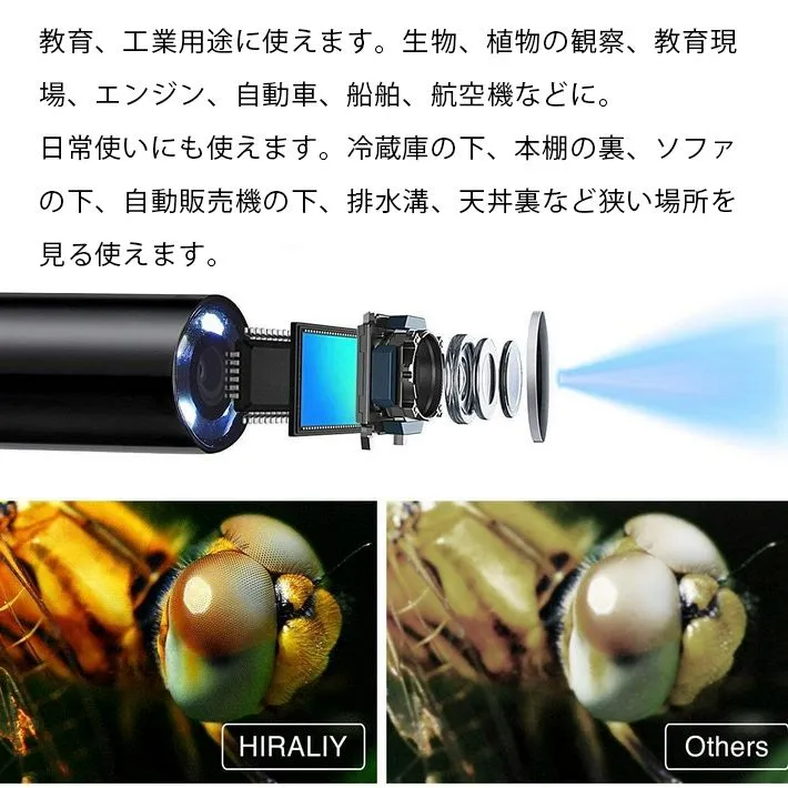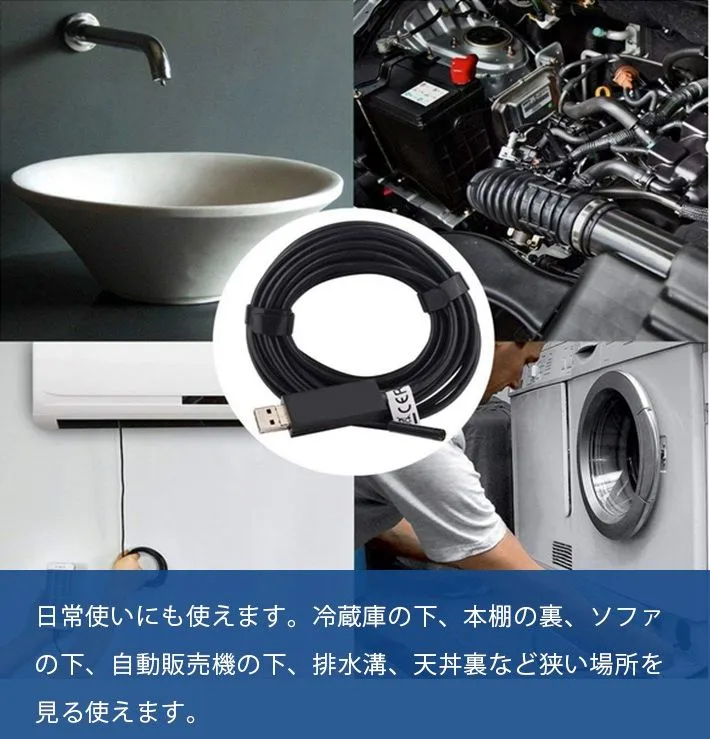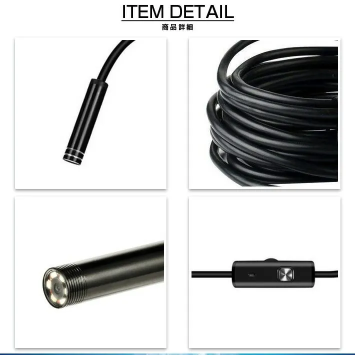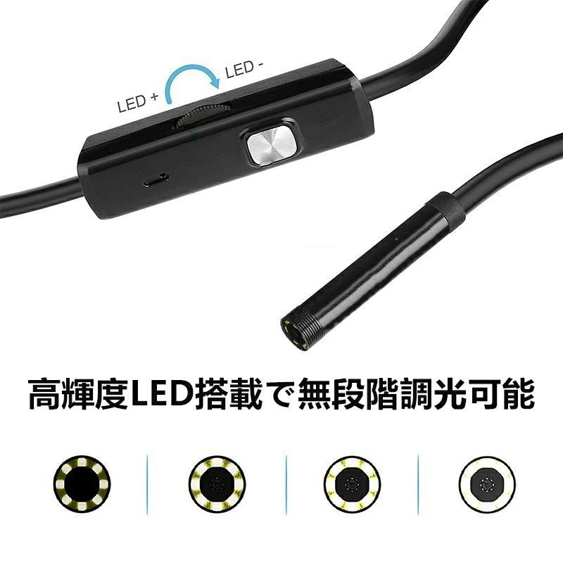 ファイバースコープ 200万画素 工業用内視鏡カメラ 5.5mm極細レンズ スネークカメラ IP67防水 配管カメラ 専用アプリ付き TYPE-C+対応 lightning接続 5Mケーブル