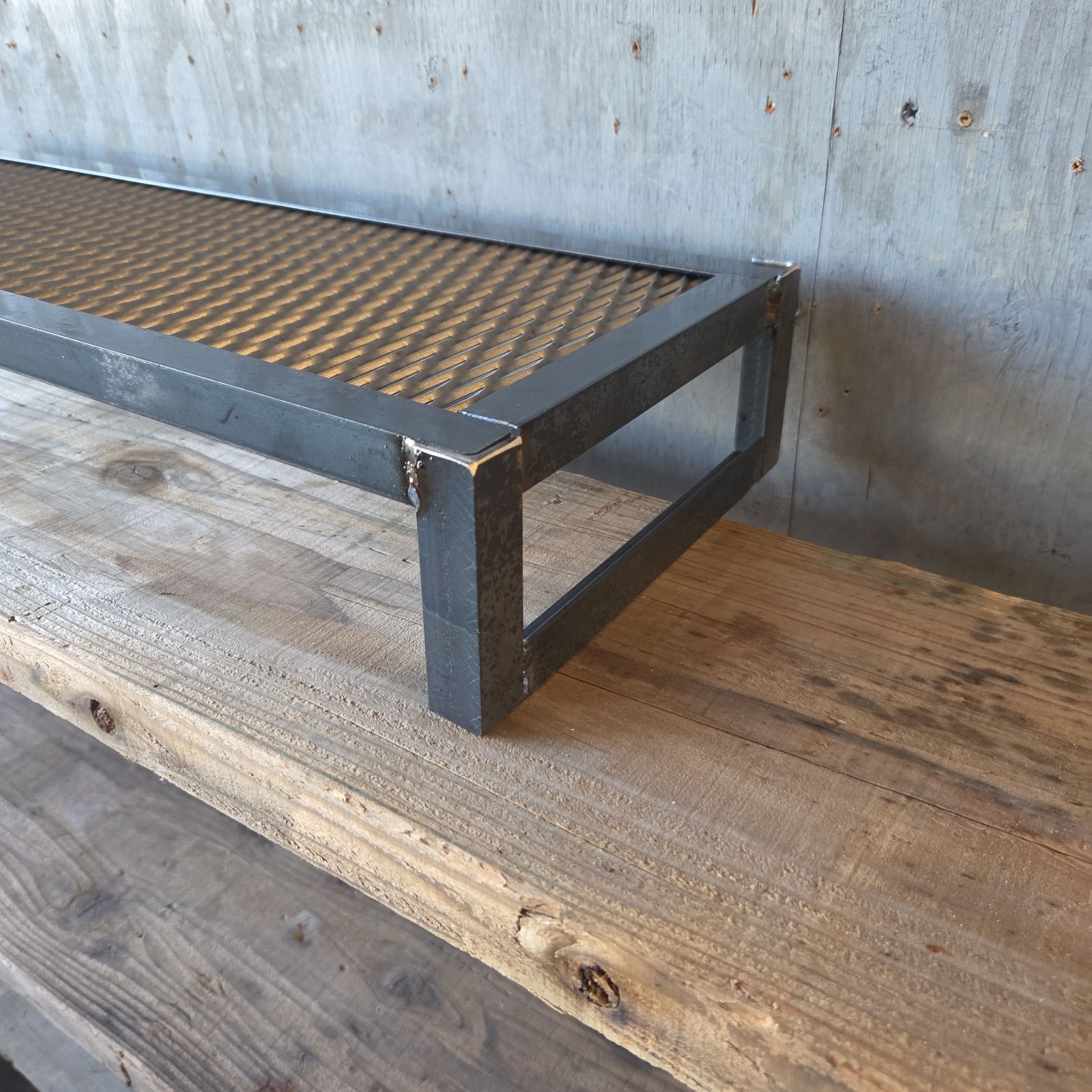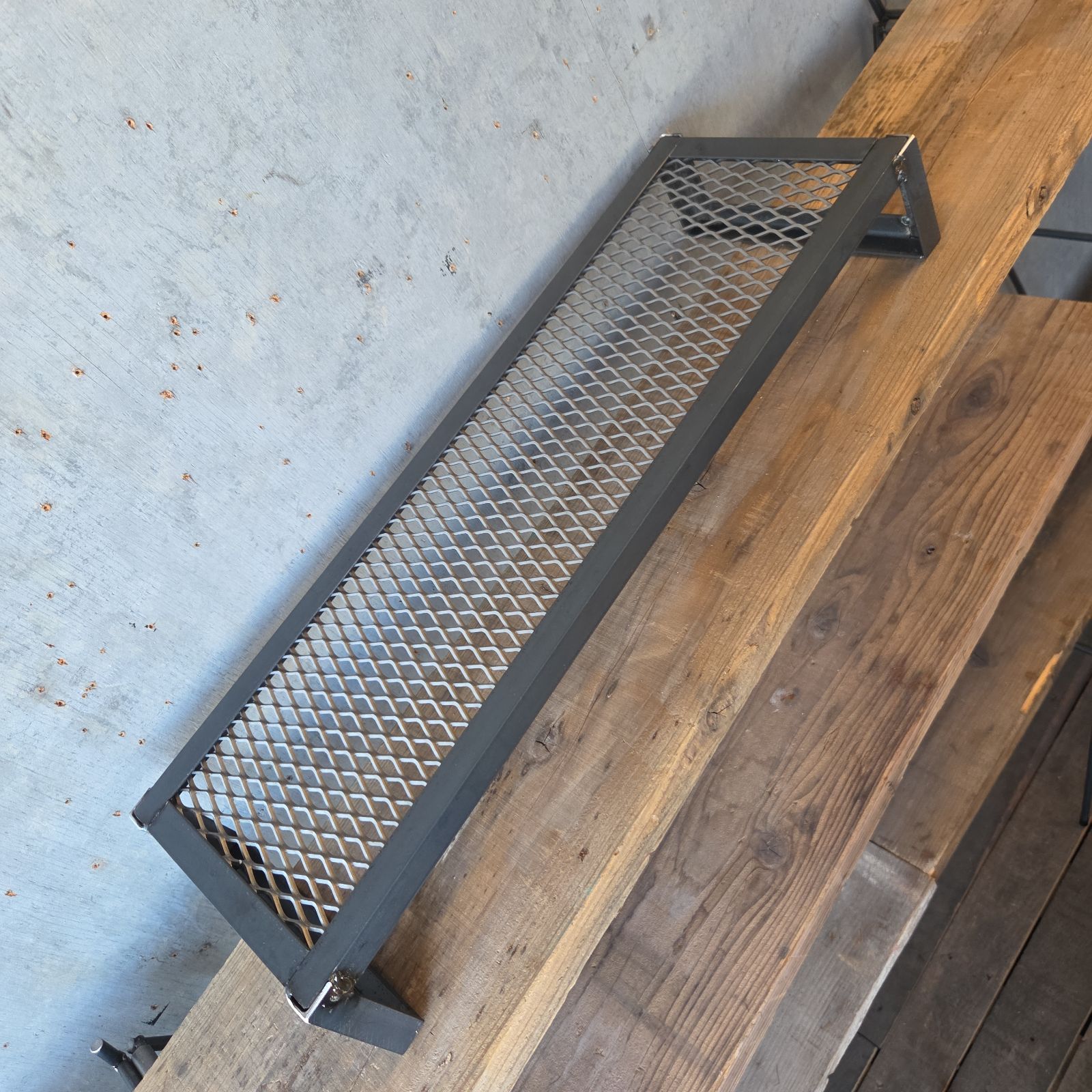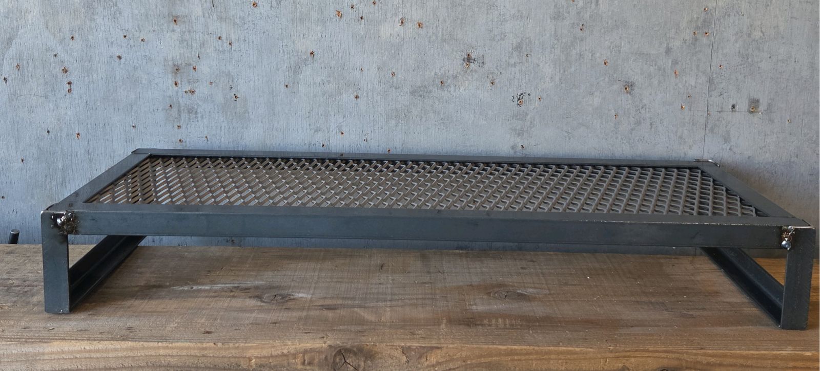 無骨なアイアンとエキスパンドメタルを組み合わせた、インダストリアルなモニター台。