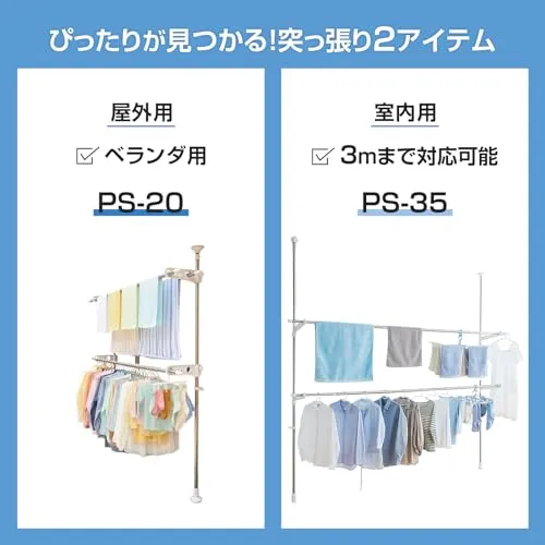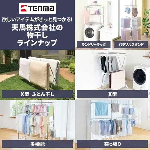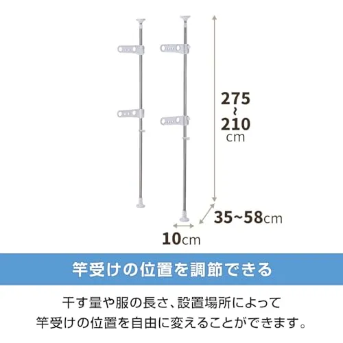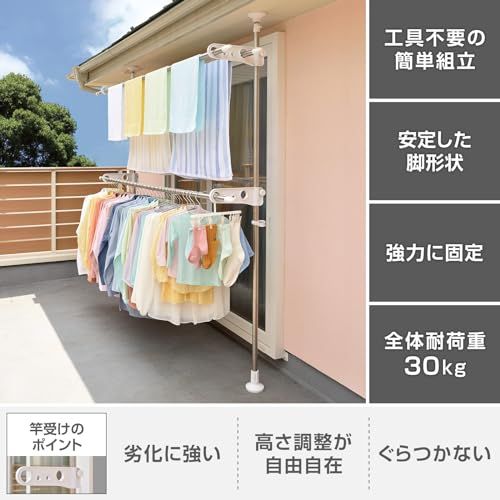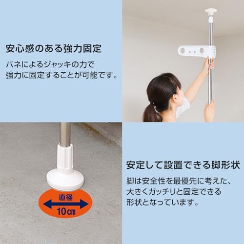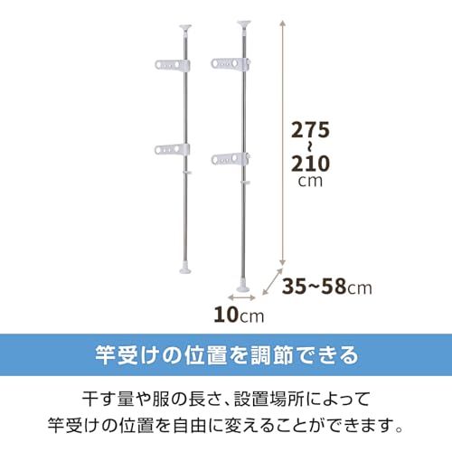 新品 天馬 大きな脚形状と吸盤状クッションでしっかり固定でき、上下に引っ張るだけで簡単設置可能 洗濯物干し 組立式 屋外用 突っ張り式物干し ベランダ用 ホワイト 幅10×奥行35-58×高さ210-275cm PS-20