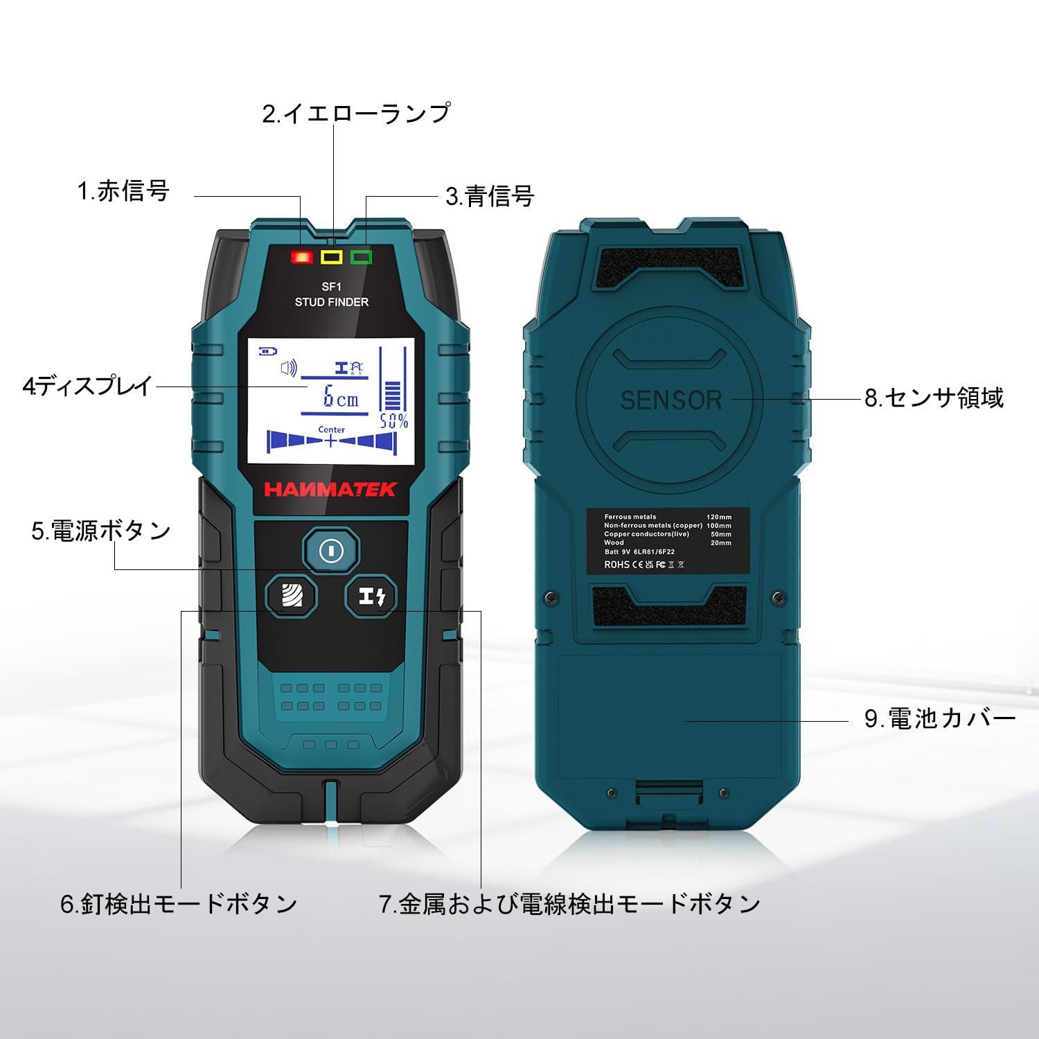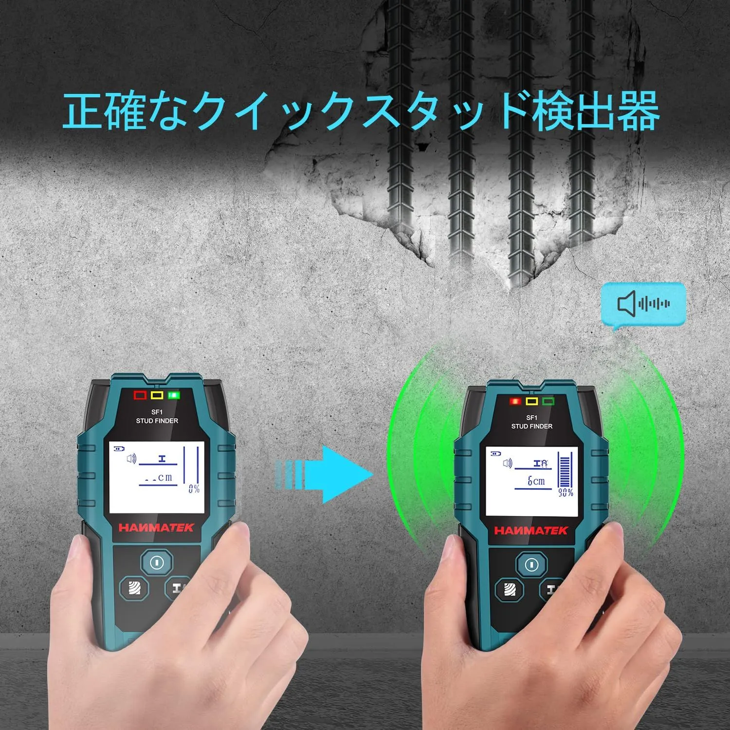 HANMATEK 下地探し 下地センサー 下地チェッカー 壁うらセンサー 深度距離表示 五合一アップグレード木材精密モード両頭ボルト探索ツール、金属中心縁、両頭ボルトと交流電線、壁パイプ位置決め器に使用 (SF1)