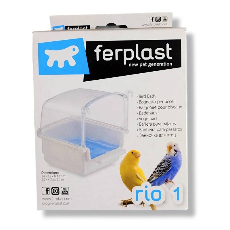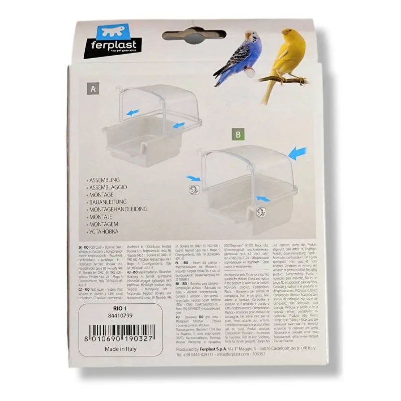 バードバス ferplast ファープラスト rio1 イタリア製 1個 小鳥 水浴び 容器 インコ 文鳥 カナリア ケージ 鳥かご 取り付け クリアカバー 水飛沫防止 透明 プラスチック 鳥用品 ペット用品 水遊び リオ1