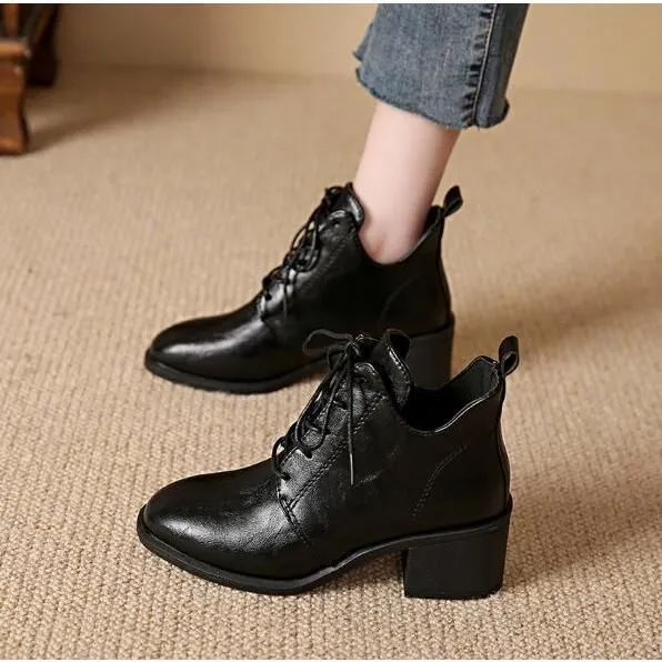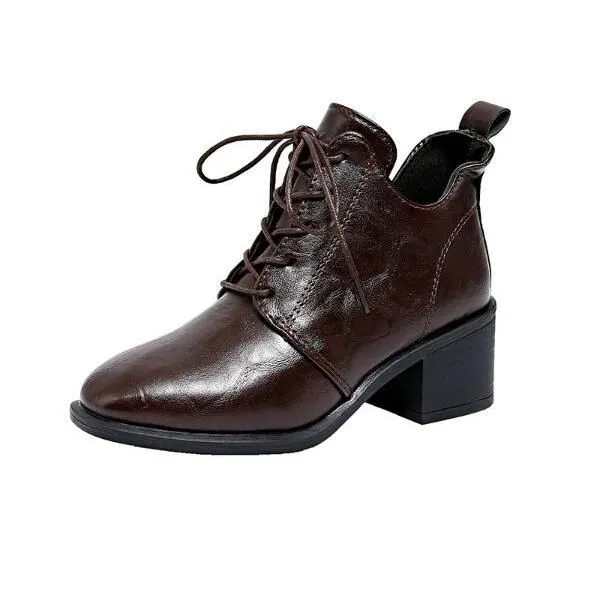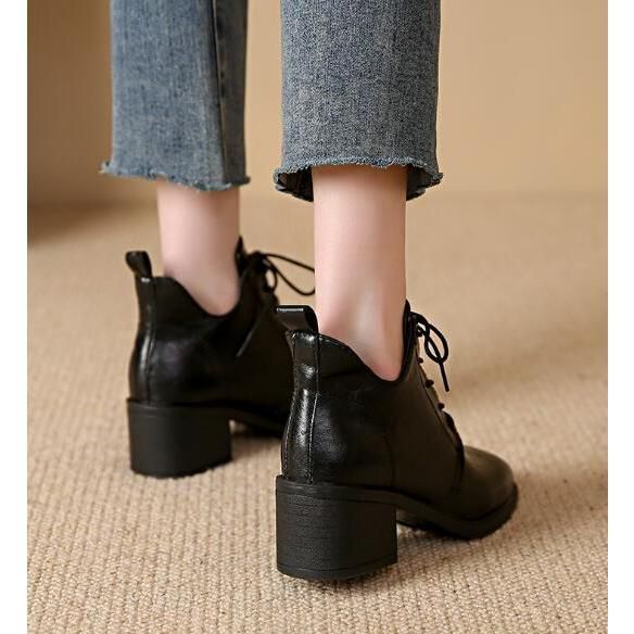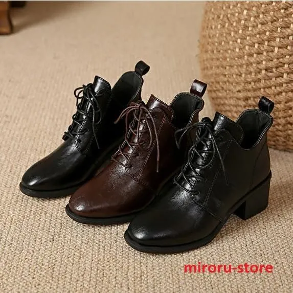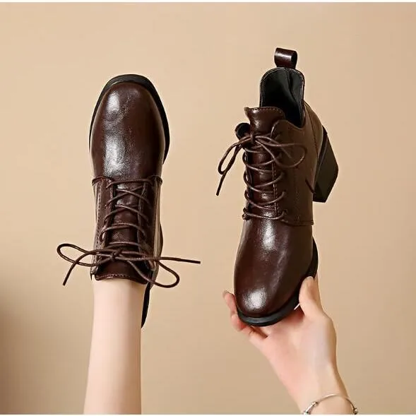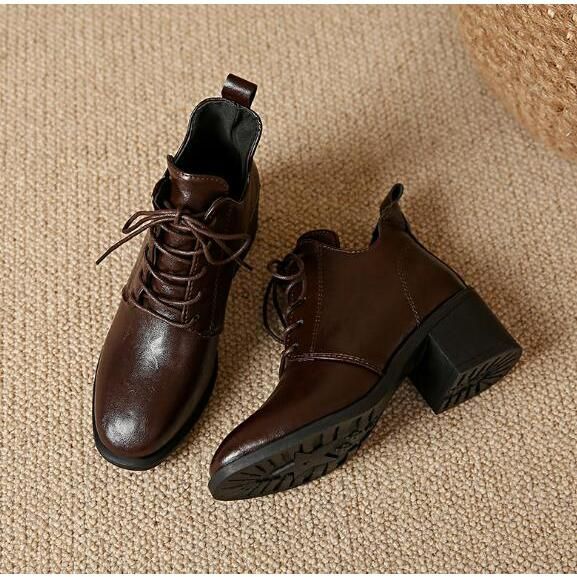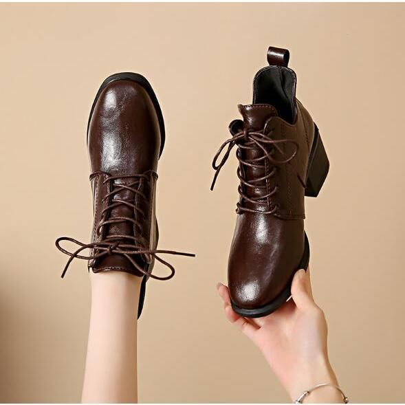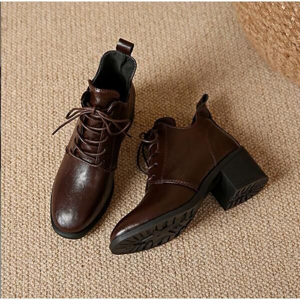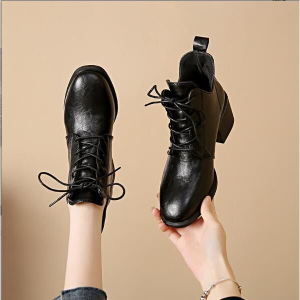 ショートブーツ ブーツ レディース ブーツ 太ヒール ローヒール 履きやすい 痛くない 靴 PU 編み上げ1742746