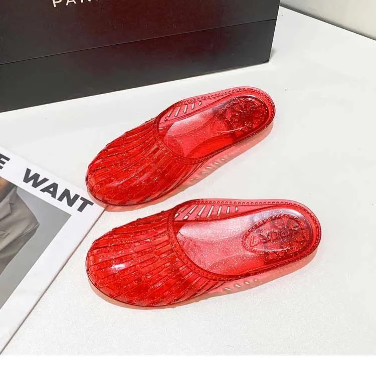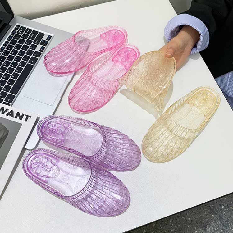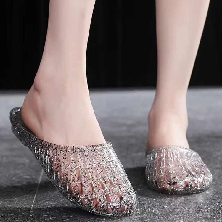 メッシュサンダル レディース フラットサンダル スリッポン スリッパ ぺたんこ クリアサンダル 2足セット 通気 軽量 歩きやすい 夏 サマーサンダル リゾート ビーチ 23-25.5cm